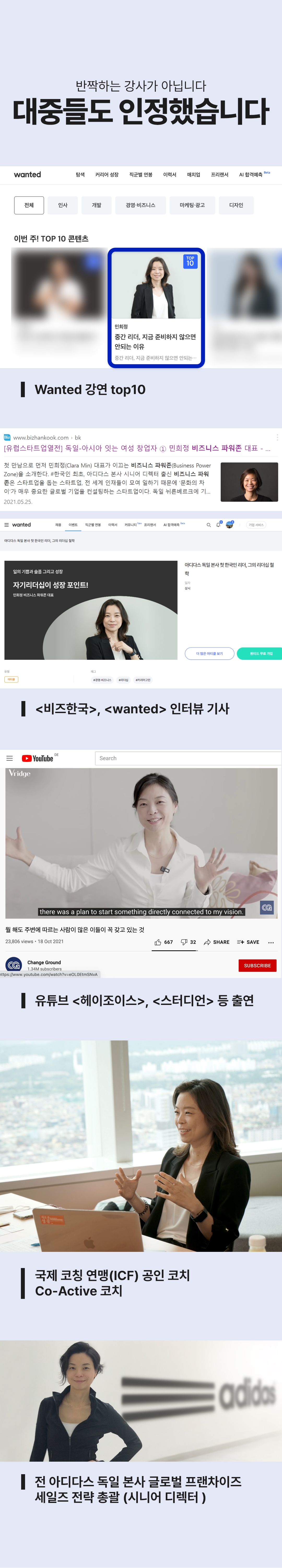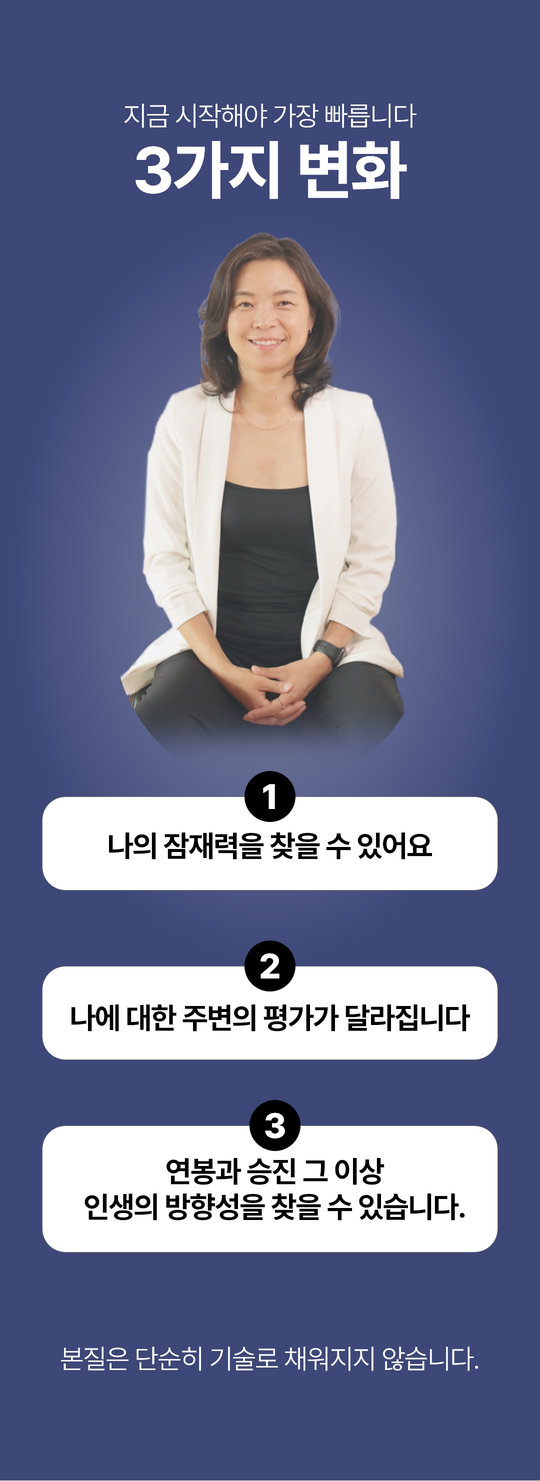 저는 진짜로 성공해야하는 바른 마음자세와 실력을 가진 분들이 조직에서 성공해야 한다고 믿습니다. 그리고 지금은 기업을 떠나 전문 비지니스 코치로서, 그 분들의 성공을 돕고 있습니다.