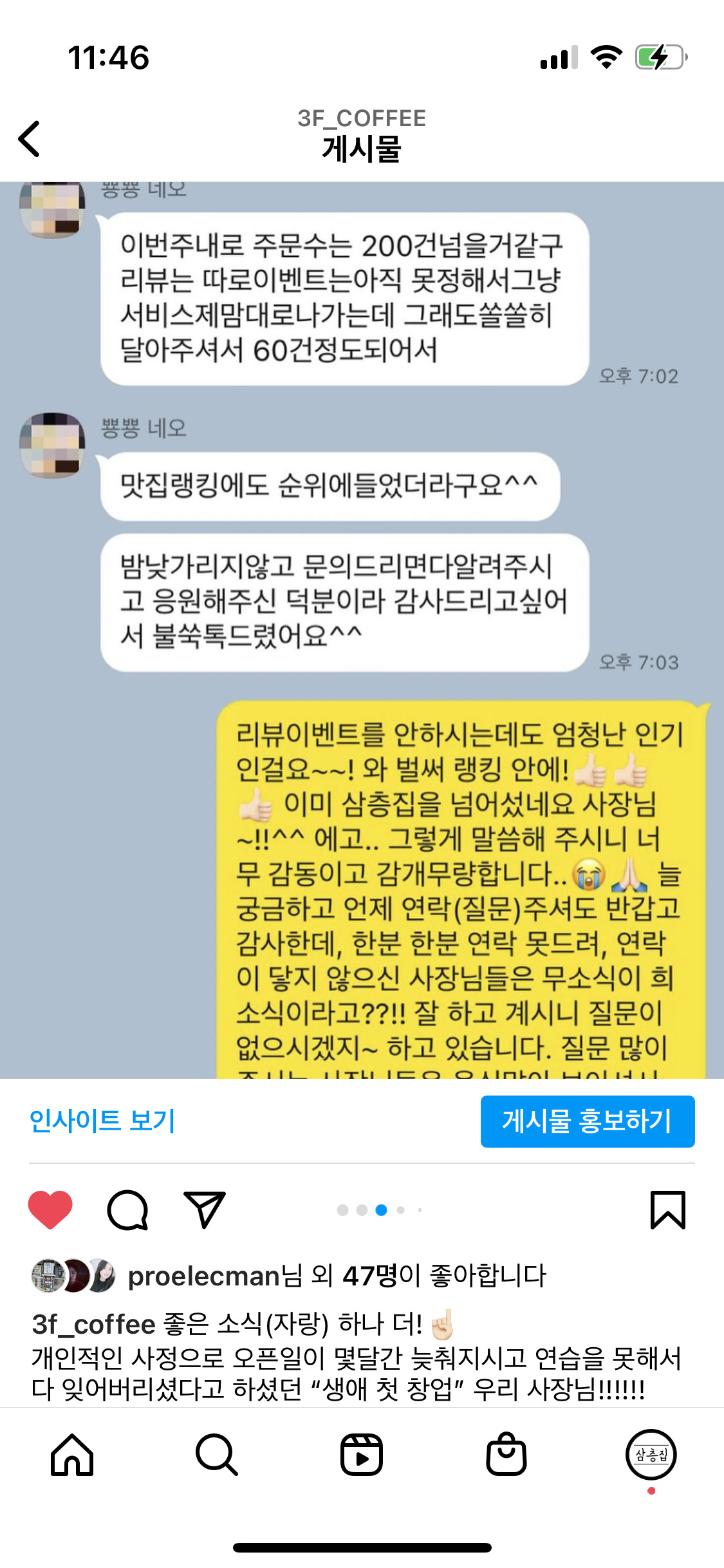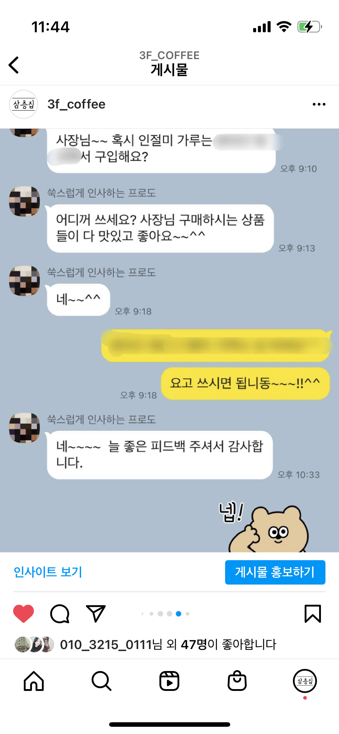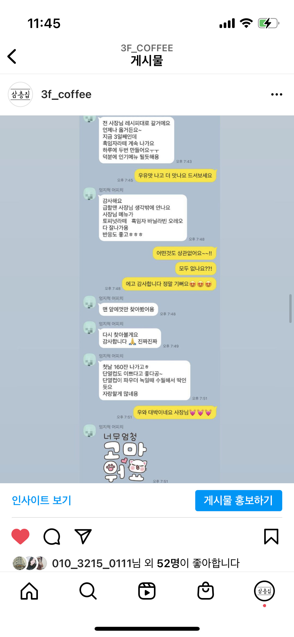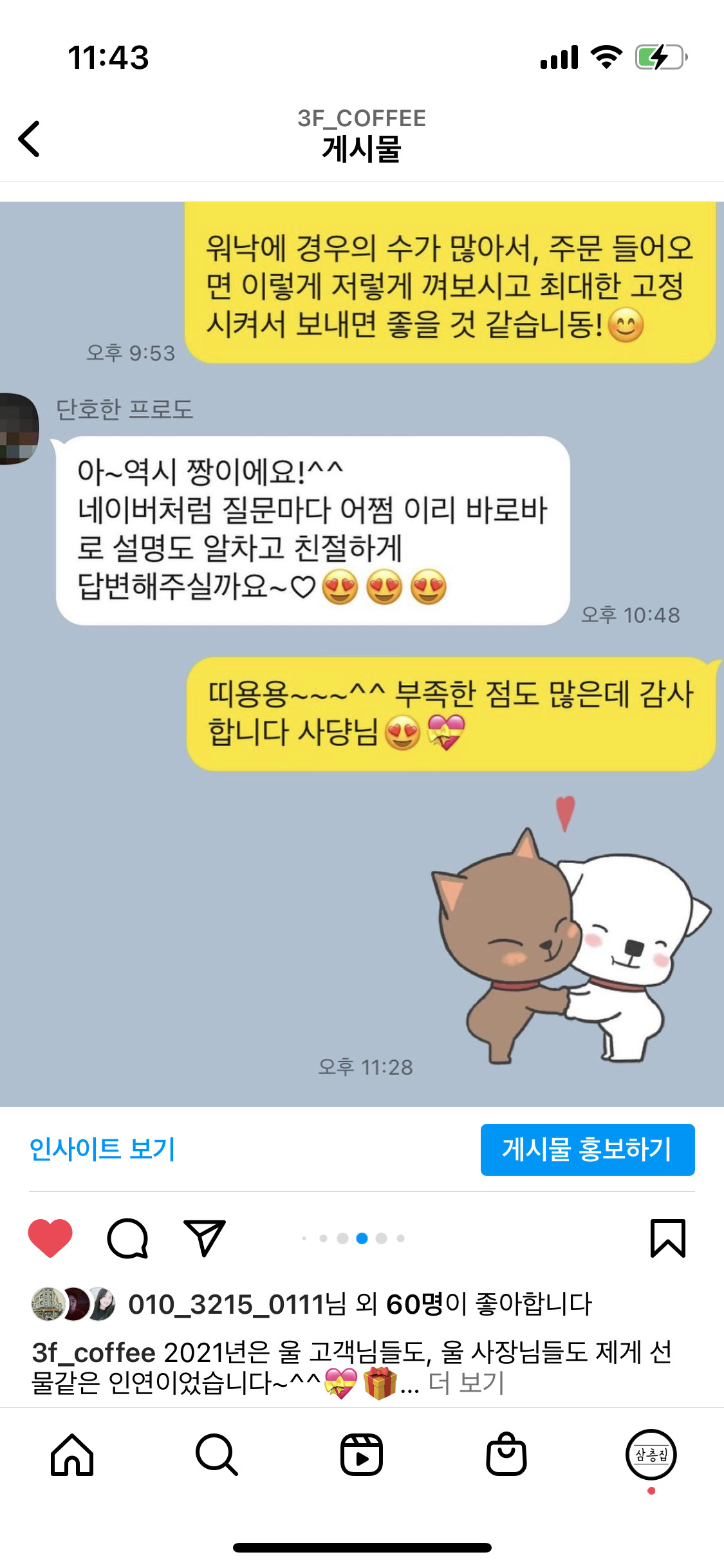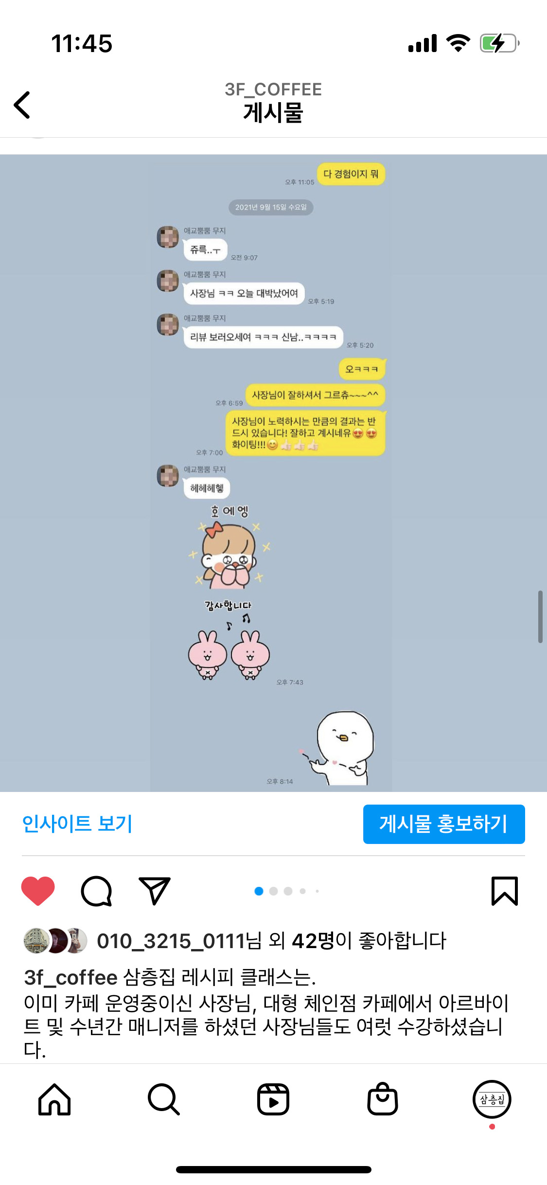 ☝🏻 삼층집 동영상 강의 수강생 사장님의 미션에 달린 소통.💌