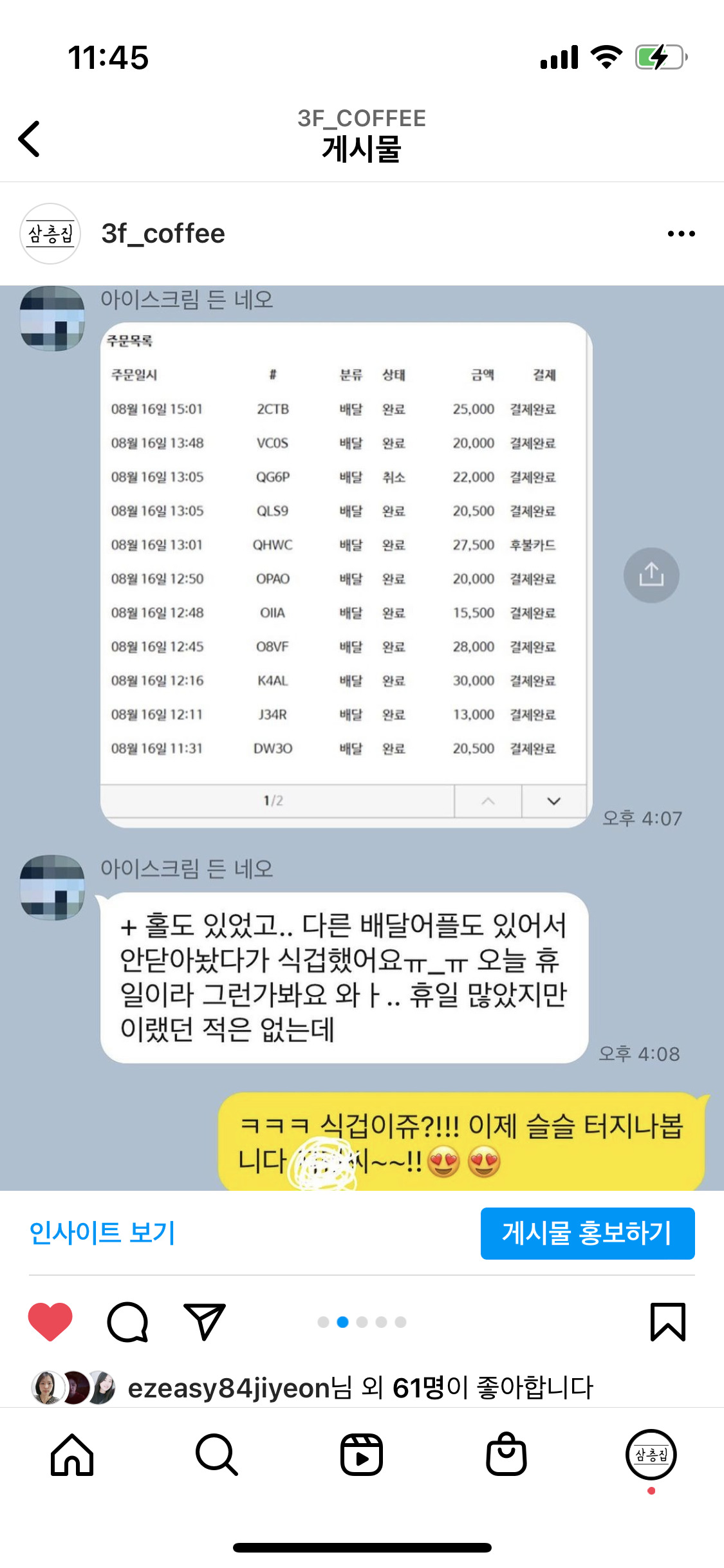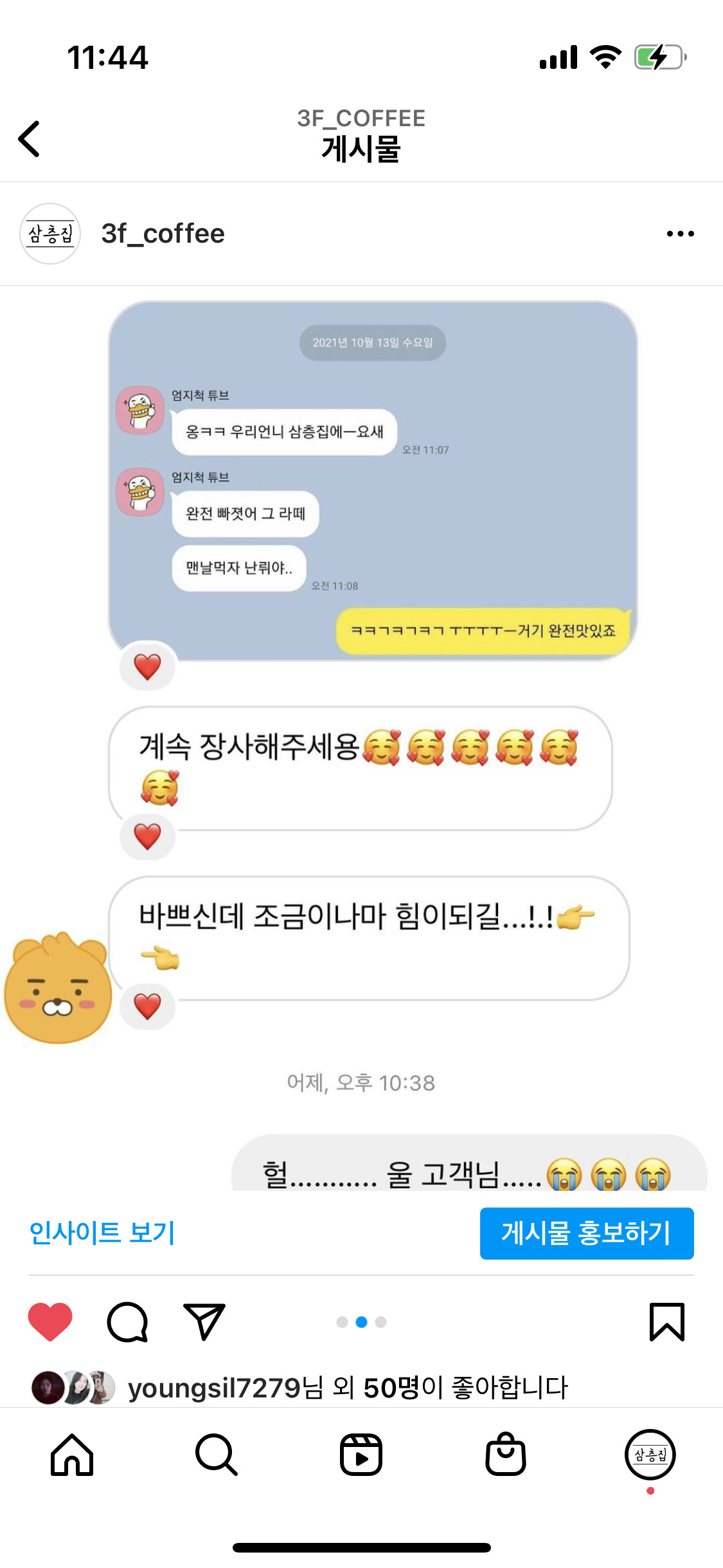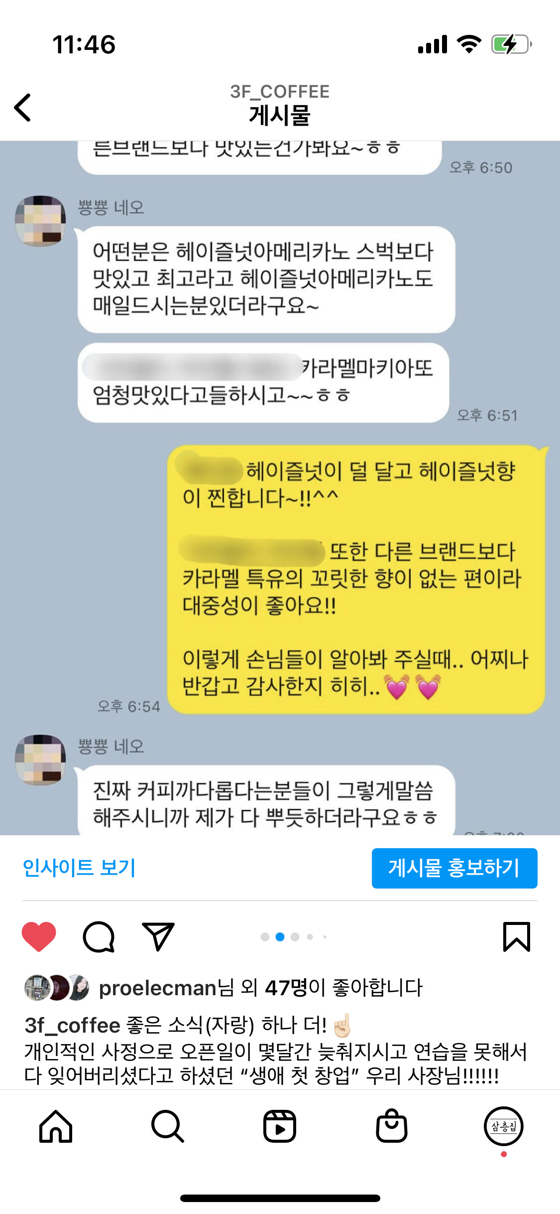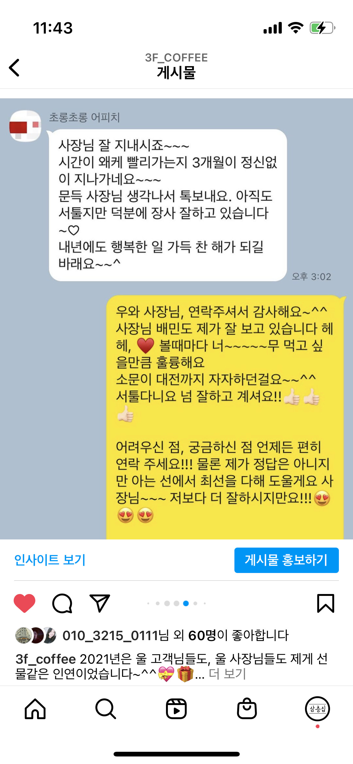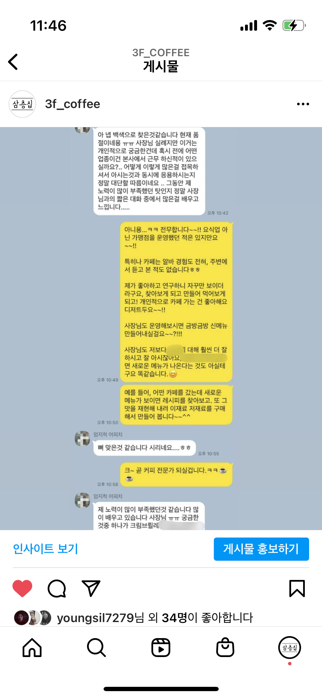 ☝🏻 삼층집 동영상 강의 수강생 사장님의 미션에 달린 소통.💌