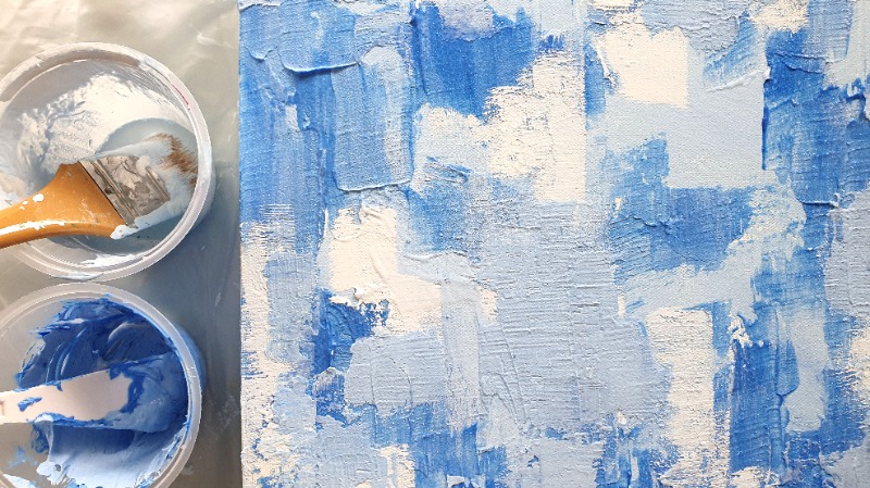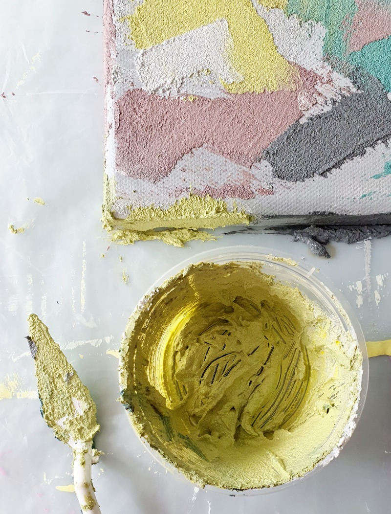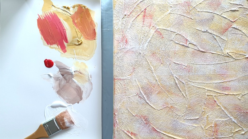 물감에 보조제를 섞어 독특한 질감을 표현하며