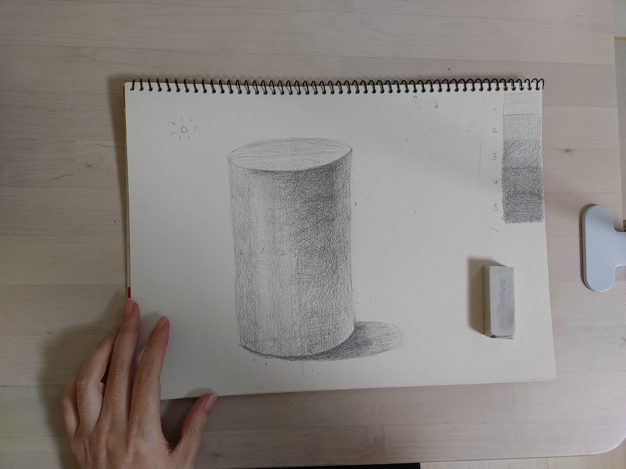 연필로 선연습. 명암표현. 기초도형을 그려보고