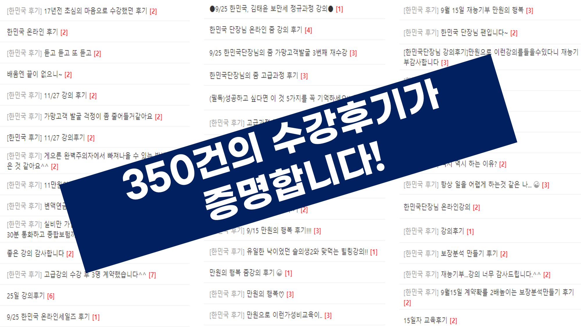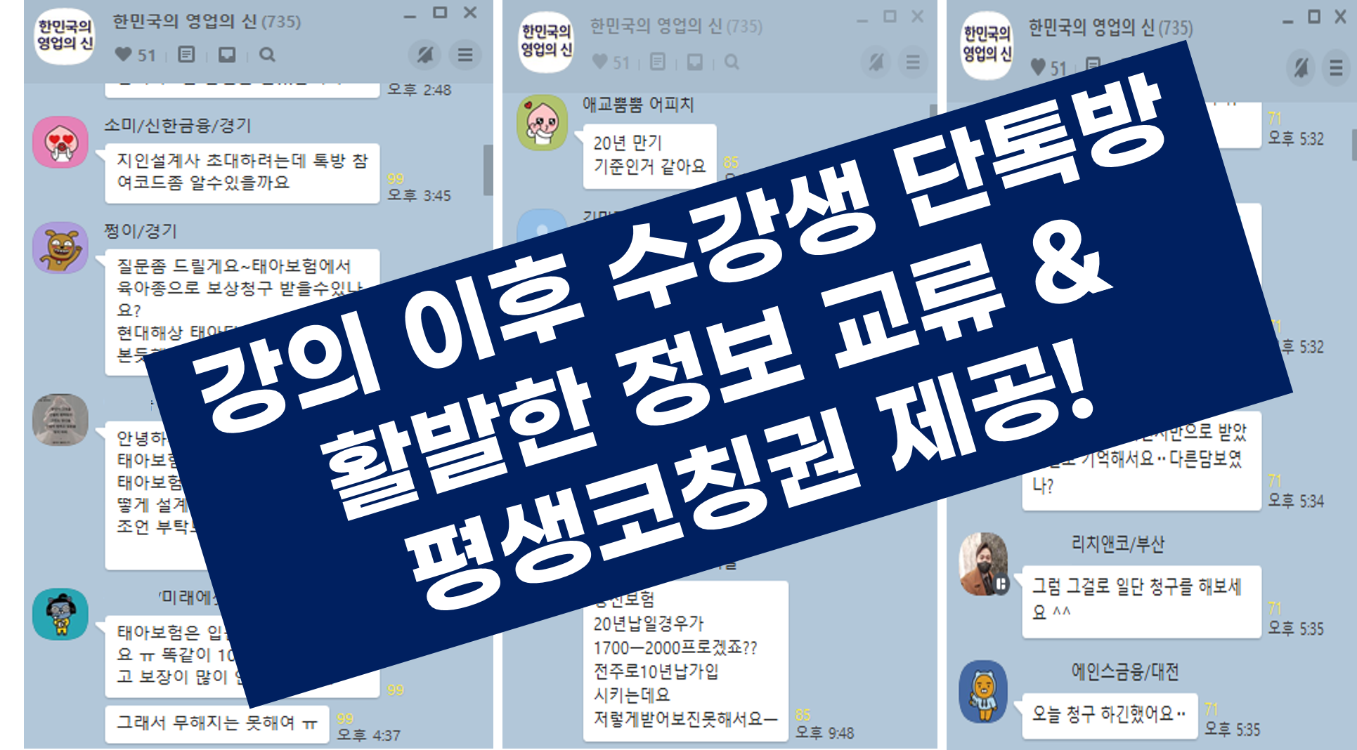 단 한 분의 수강생도 포기하지 않겠습니다 평생코칭권을 드리니 언제든지 연락주시기 바랍니다.