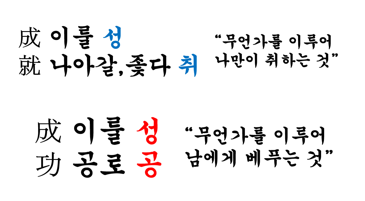 성취는 무언가를 이루어서 나만이 취하는 것이라 하고,