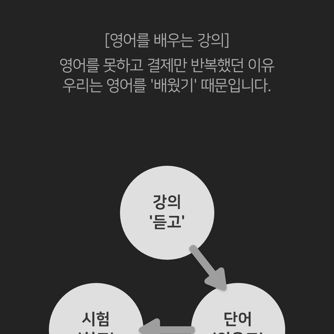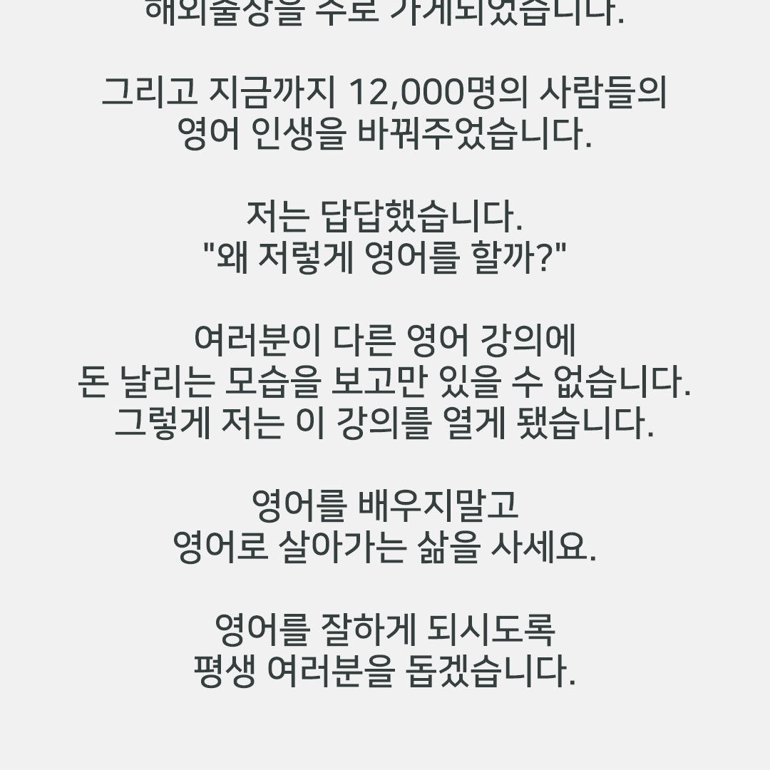 여러분이 다른 영어 강의에돈 날리는 모습을 보고만 있을 수 없습니다.그렇게 저는 이 강의를 열게 됐습니다.