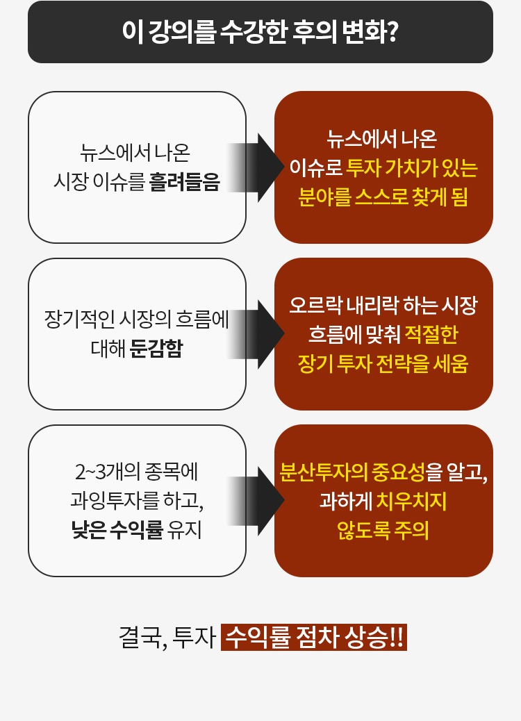 이론에서 그치지 않고 배운 내용을 투자에 바로 적용할 수 있습니다.