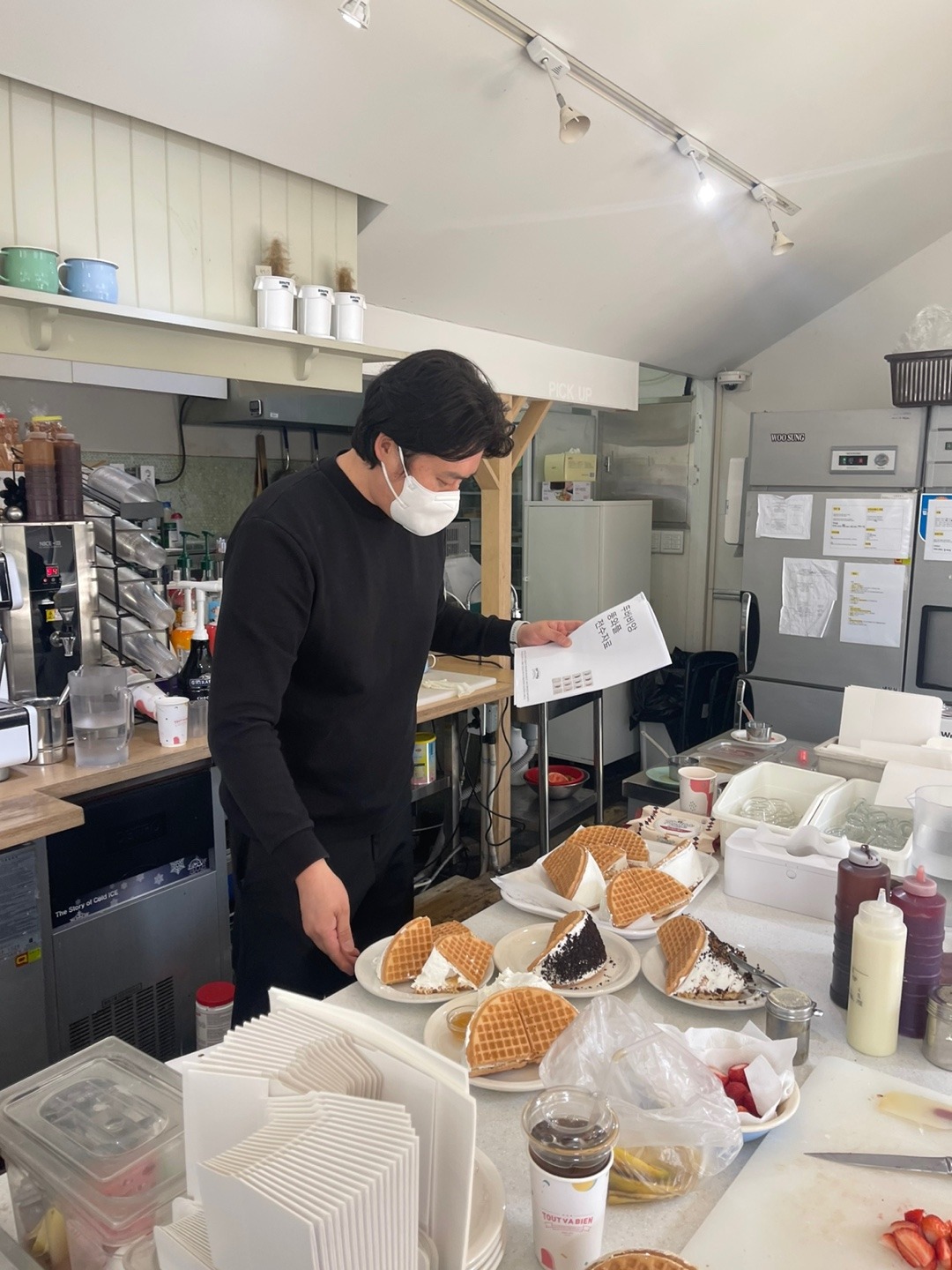 디저트페스티벌에서는 스텝 4명이 끊이지 않는 고객님들 줄을