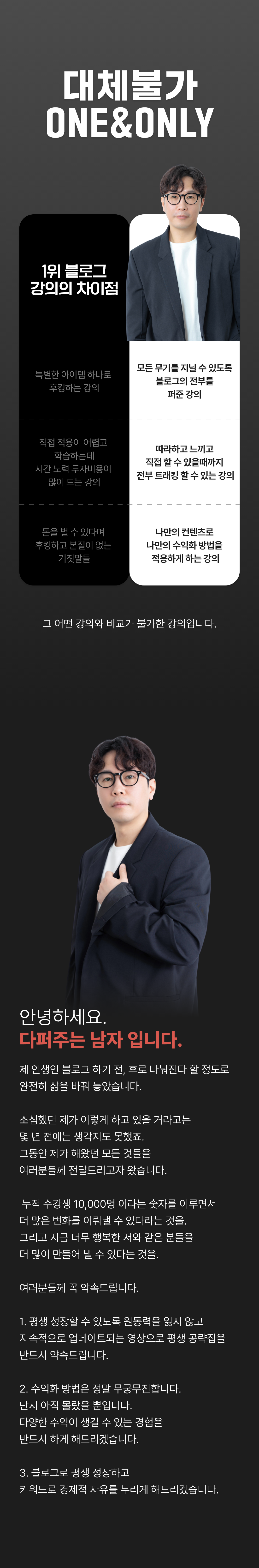직접 수익을 내봤고, 수많은 블로거를 컨설팅하며 눈으로 확인했기에 말할 수 있는 자신감입니다.