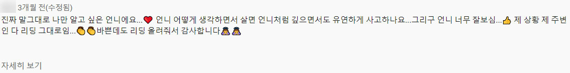 사실 제게는 타로 리더 말고도 다른 특별한 직업이 있는데요. 저는 칠년 정도 책을 만들어 온 출판 편집자예요. 여러분들이 평범하다고 생각한 이야기는 제게는 훌륭한 이야기가 되고 책 한 권이 된답니다. 만약 여러분들이 삶에서 자신만의 특별한 이야기를 찾아내고 싶다면 도움을 주기에는 딱 알맞은 직업이라고 할 수 있겠죠?