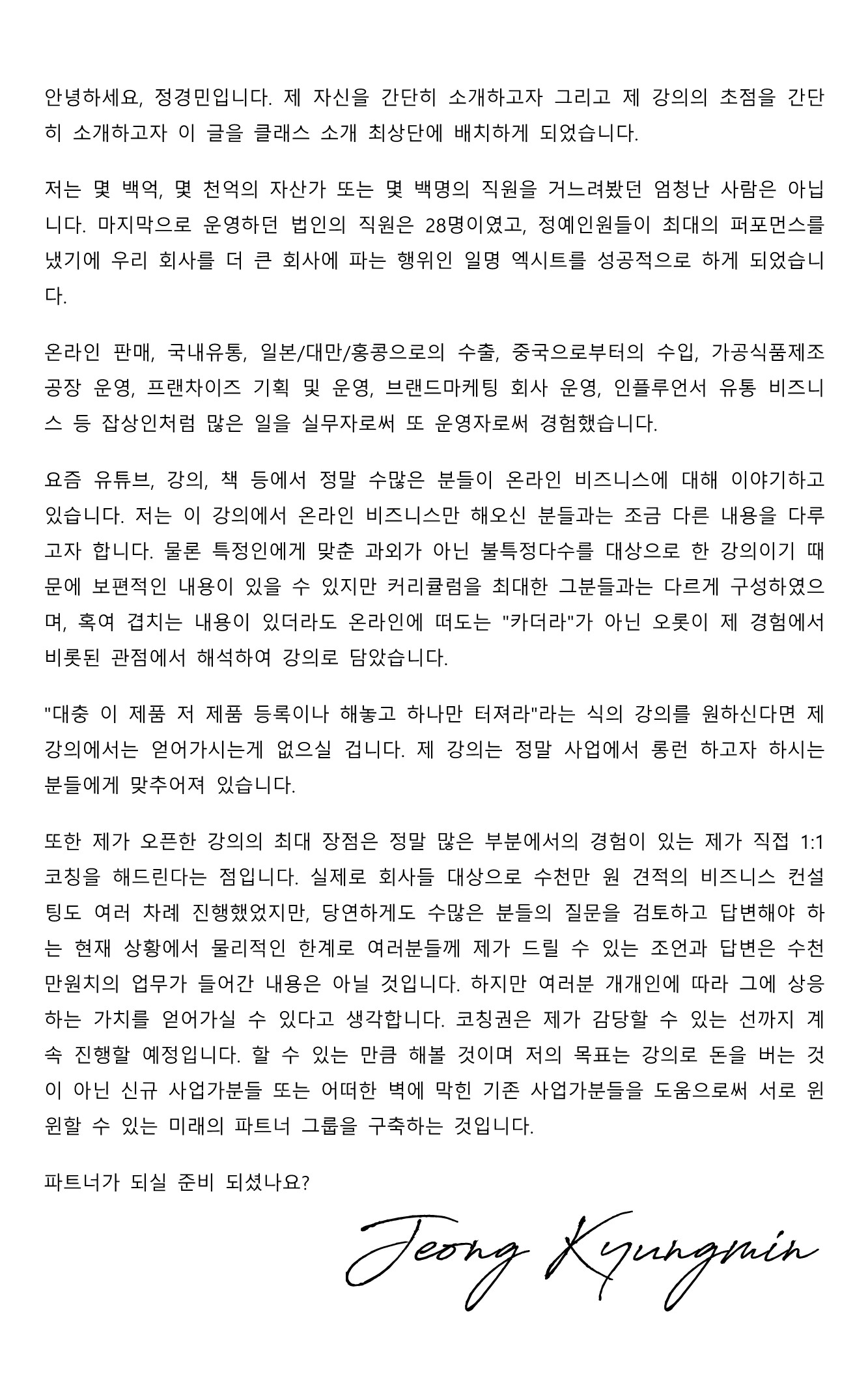 17년차 사업가 정경민입니다
