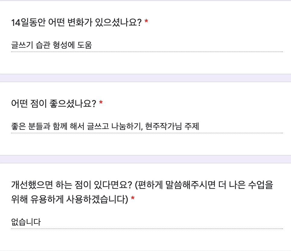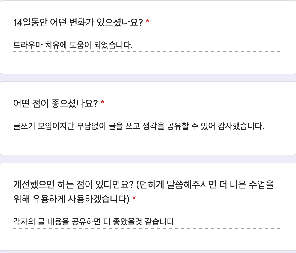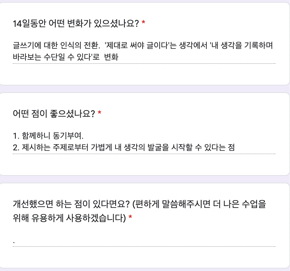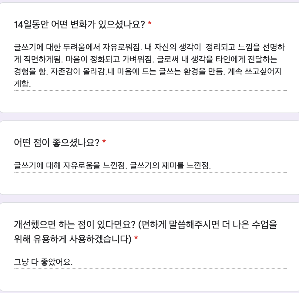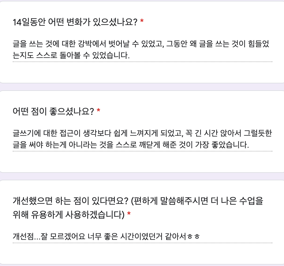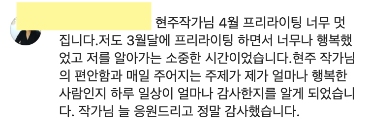 아래는 글쓰기 수업을 들으신 수강생 분들의 후기 일부입니다.