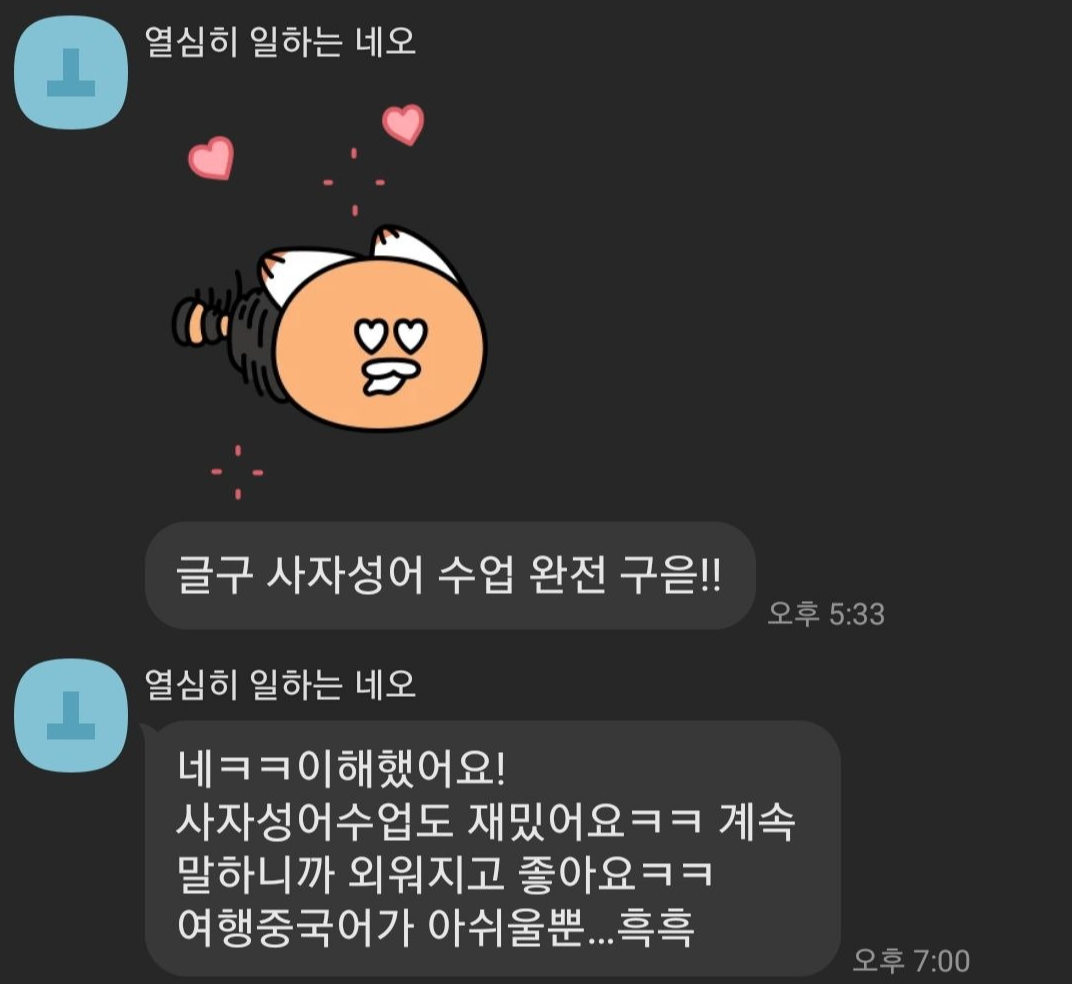 삼성전자 tsc 특강, 서울대학교 중국어 특강, 이수화학 기초 중국어 사내강사, 경일 관광 고등학교 중국어 특강 외 다수