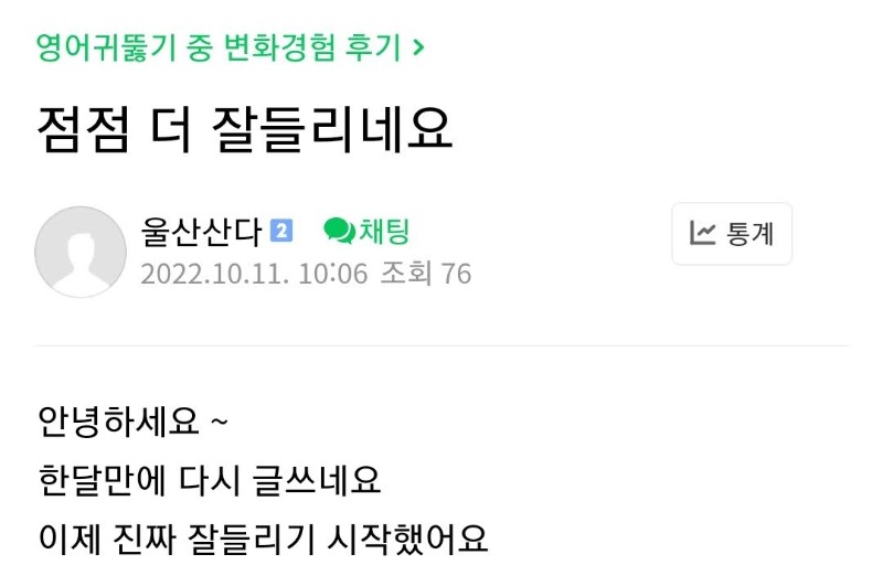 *성인 영어귀뚫기 1년 7개월만에 성공, 지도
