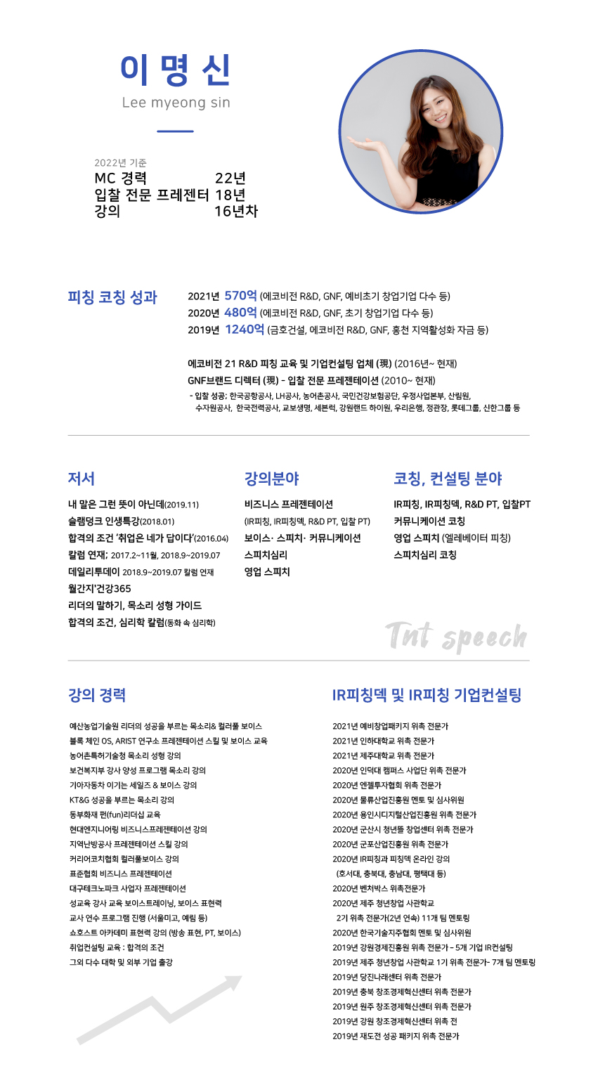 ▶ MC 22년, 입찰 전문 프레젠터 18년, 강의 16년, 2022년 기준