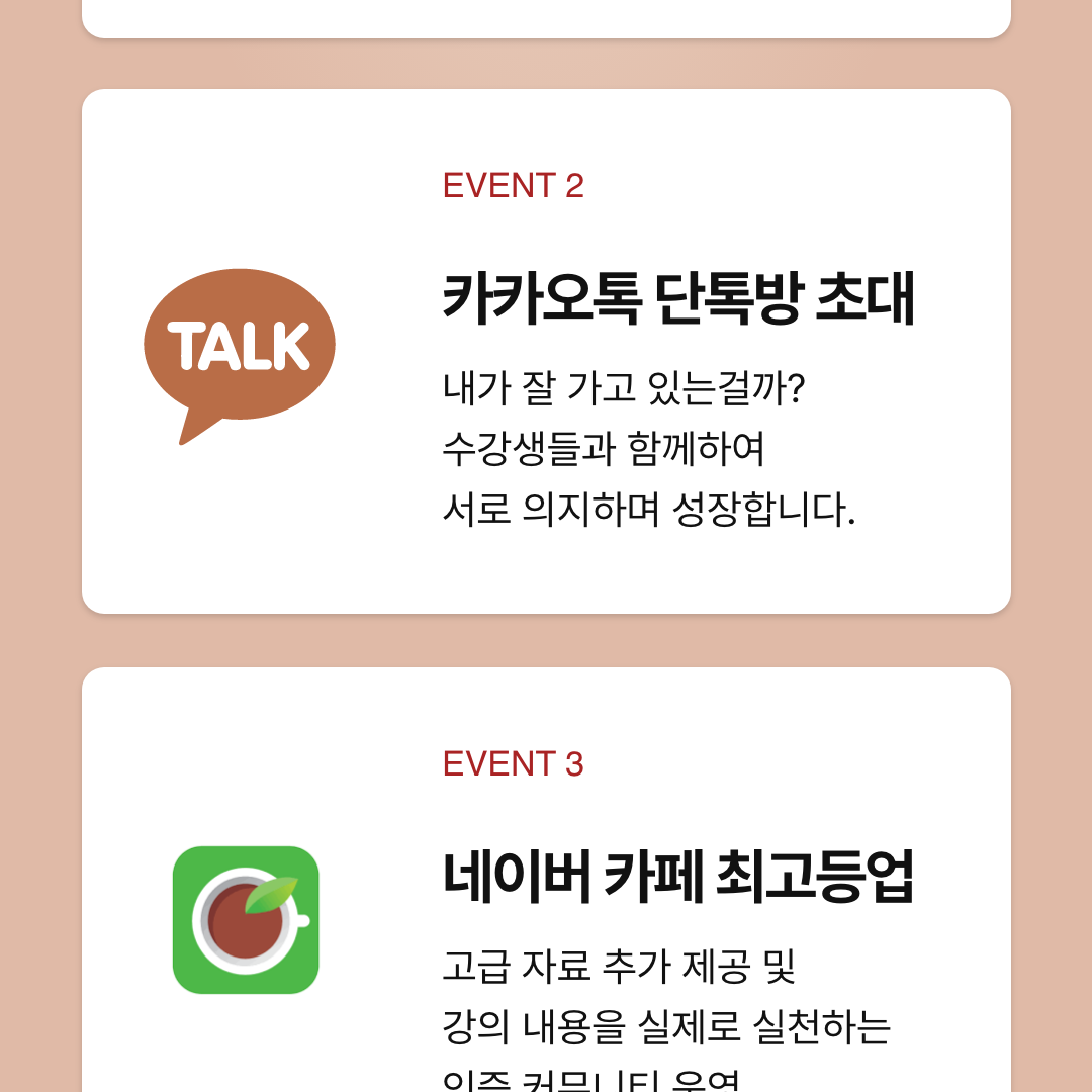 결제 직후, 커뮤니티에 초대해드립니다. 커뮤니티에 가입 후 같은 기수의 사람들과 소통해보세요.