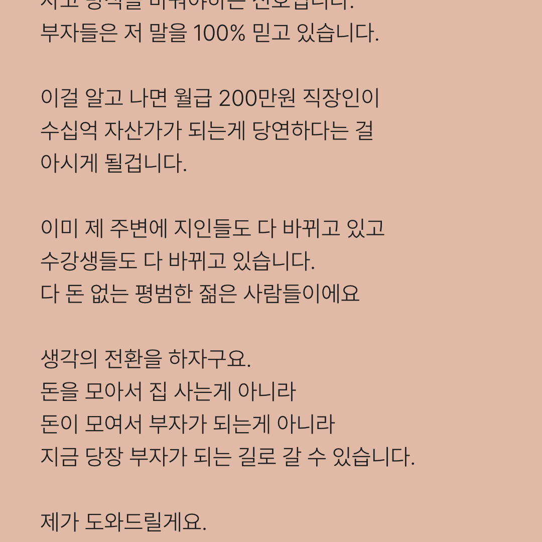 지금 당장 부자가 되는 길로 갈 수 있습니다.