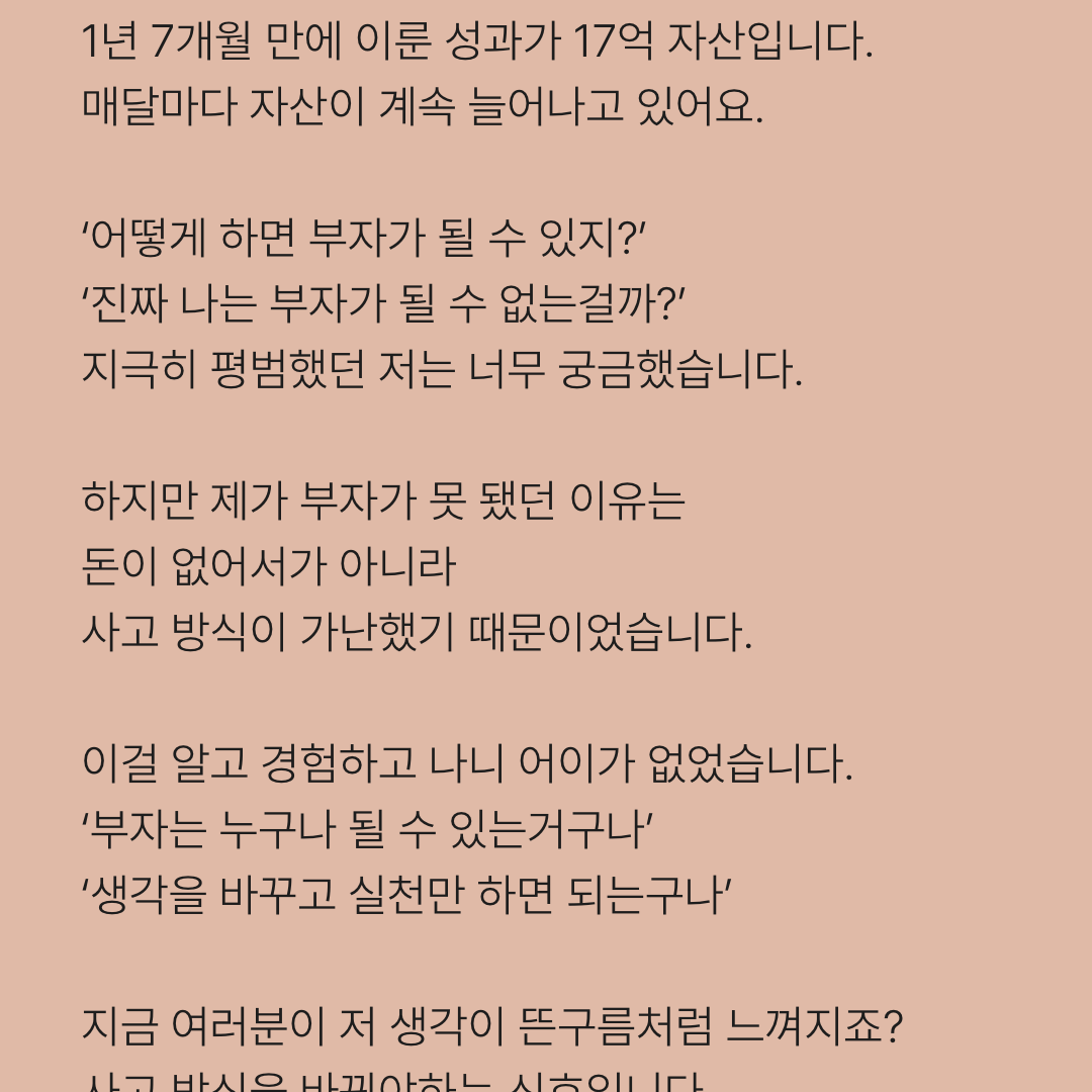 1년 7개월 만에 이룬 성과가 17억 자산입니다.