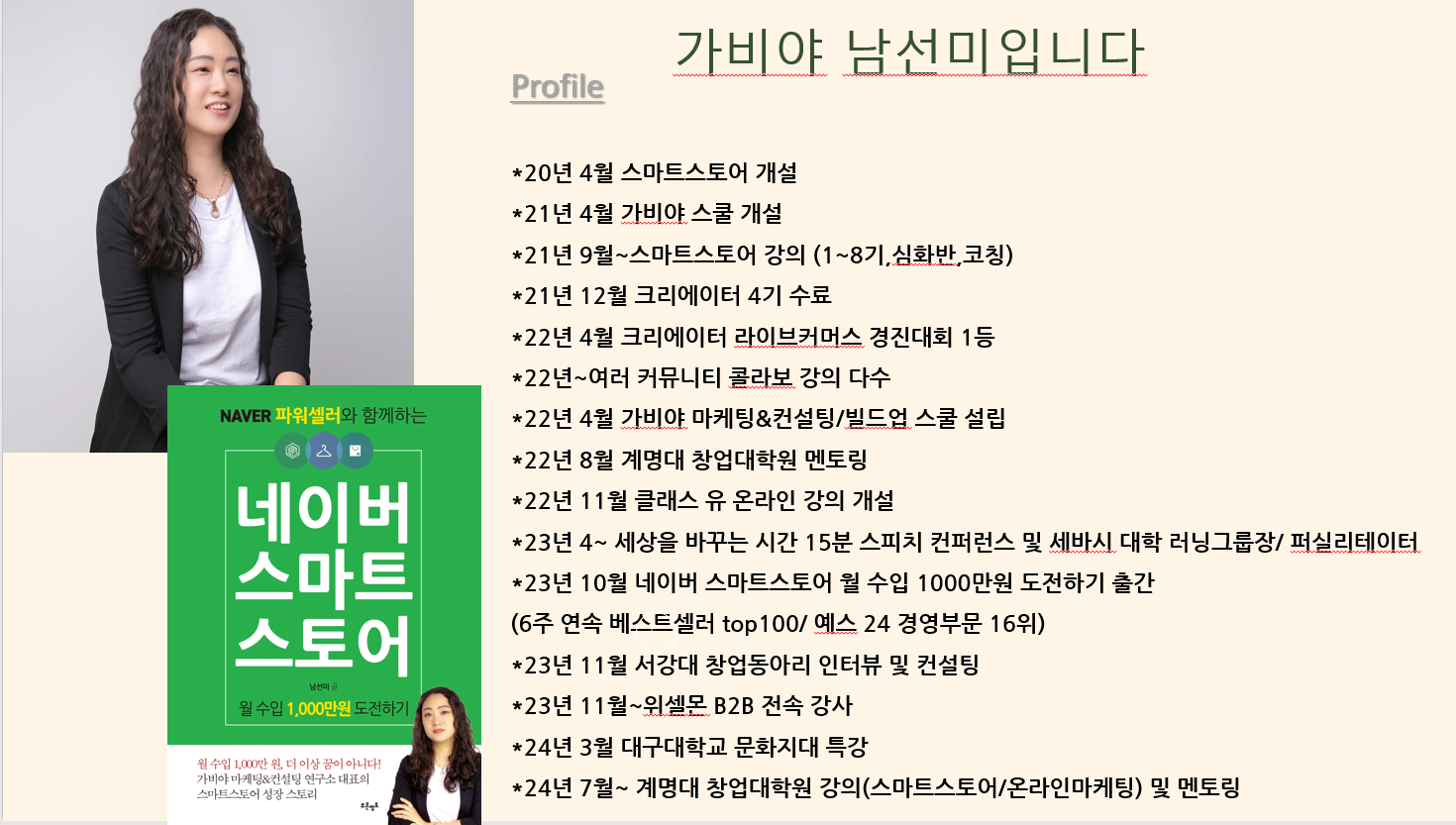 왕초보를 위한 스마트스토어 강사 가비야입니다.