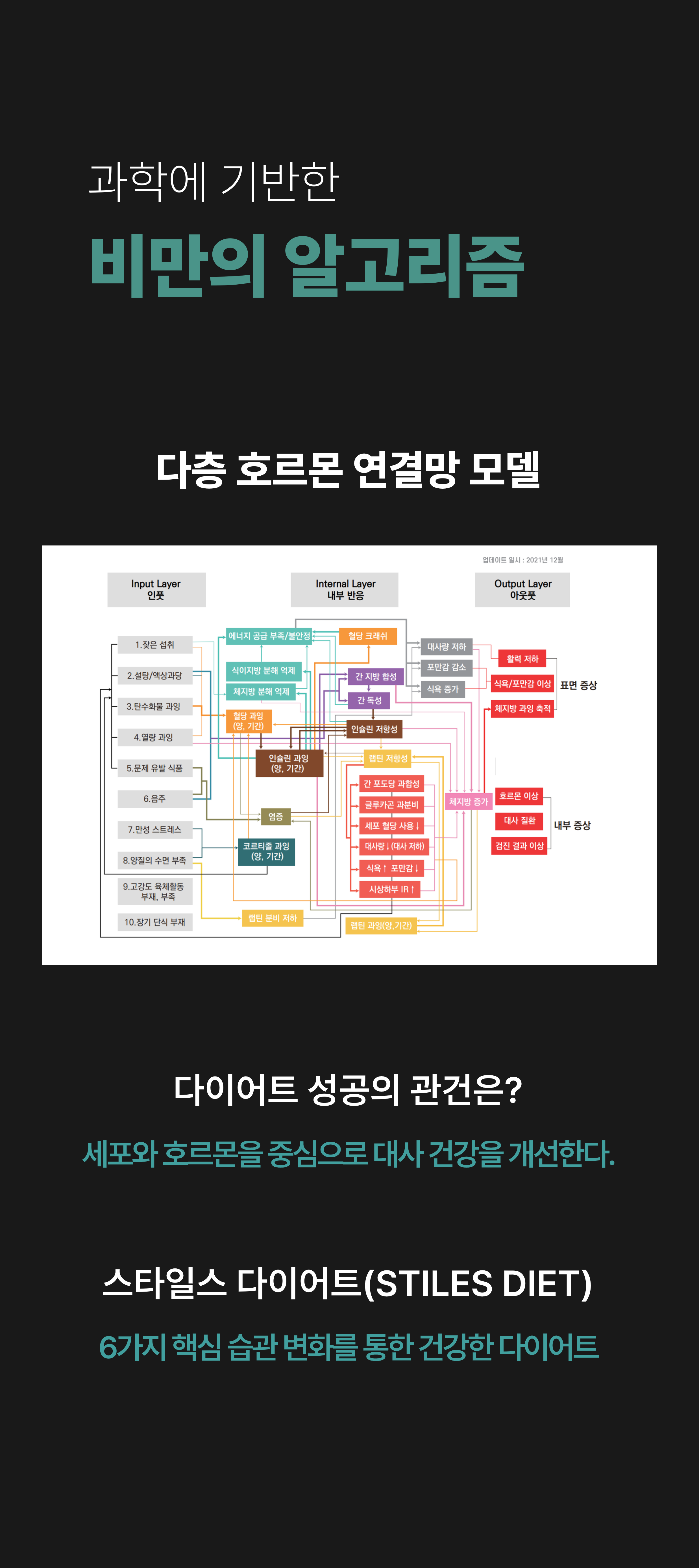 6년간 연구한 내용을 담은 〈다이어트 사이언스 2022〉를 출간했다. 그는 이 책을 통해 전통 다이어트 패러다임의 오류를 증명하고, 비만의 본질을 꿰뚫는 ‘다층 호르몬 연결망 모델'을 소개했으며, 6가지 습관을 중심으로 대사 문제를 해결하는 스타일스 다이어트를 제시했다.