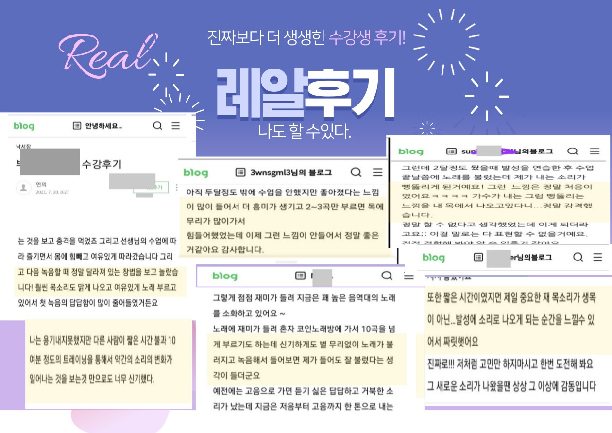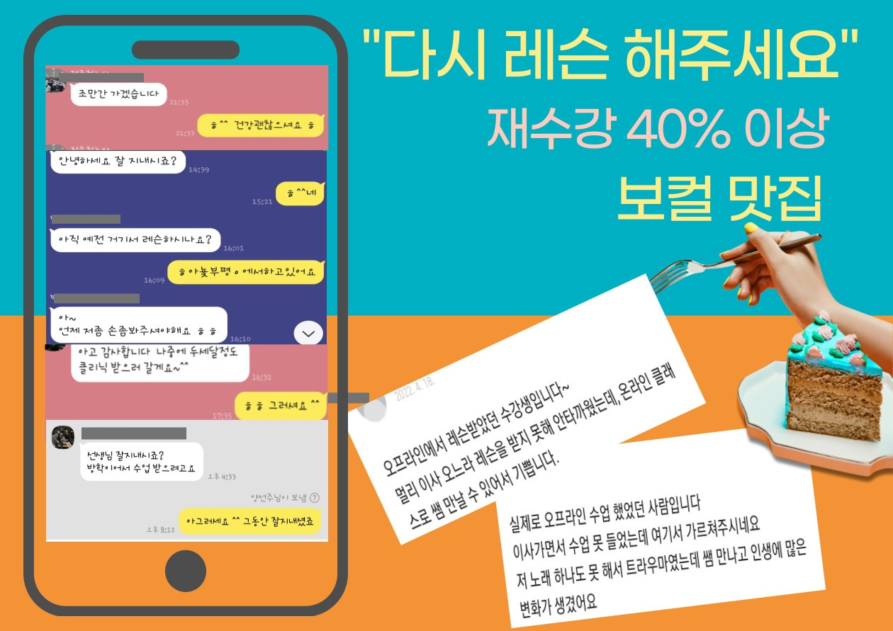 실력의 향상을 경험하신 분들이 찾아주시는 보컬 맛집입니다.