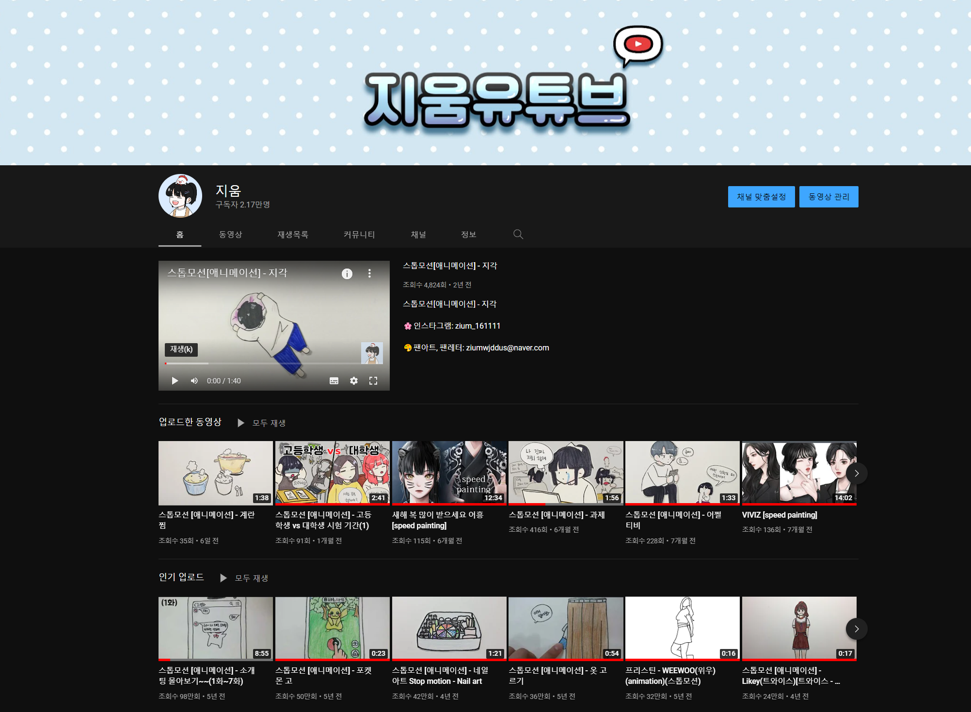 제 유튜브 채널에 가보시면 6년동안 올렸던 스톱모션 영상이