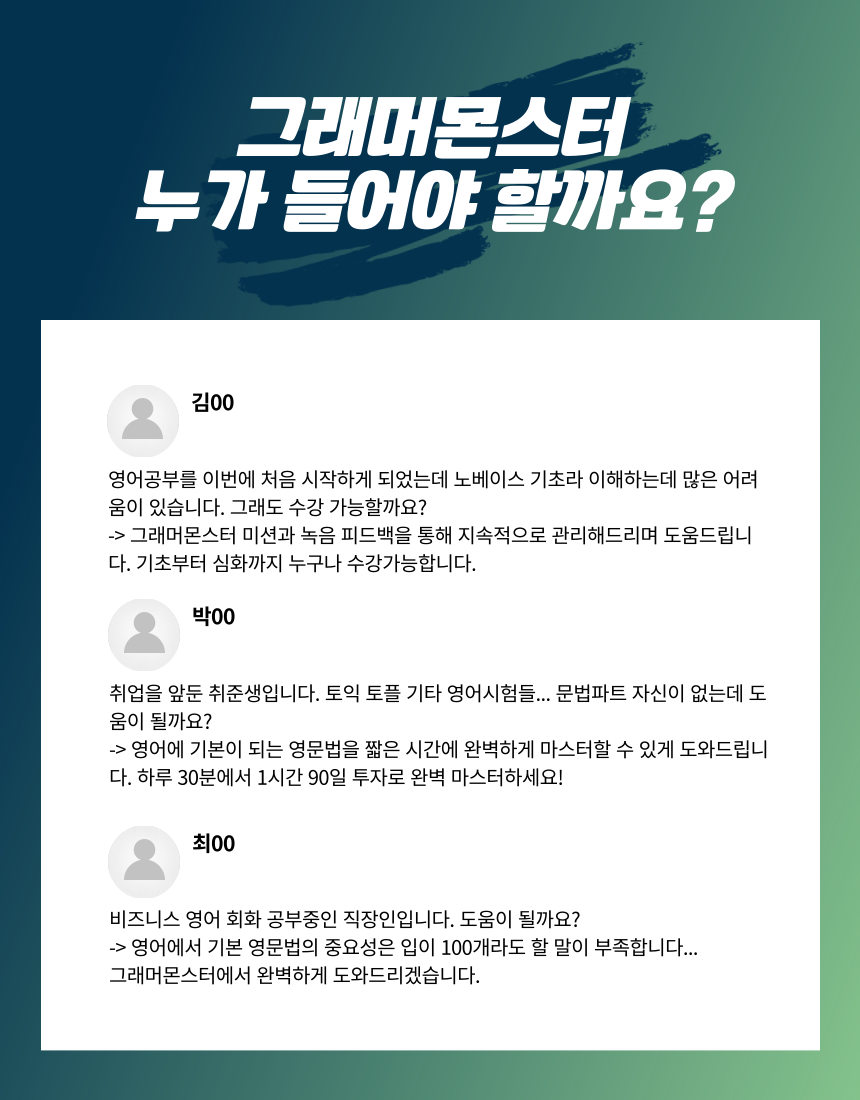 영문법 완전 정복에 다가갈 수 있도록 그래머몬스터가 돕겠습니다!