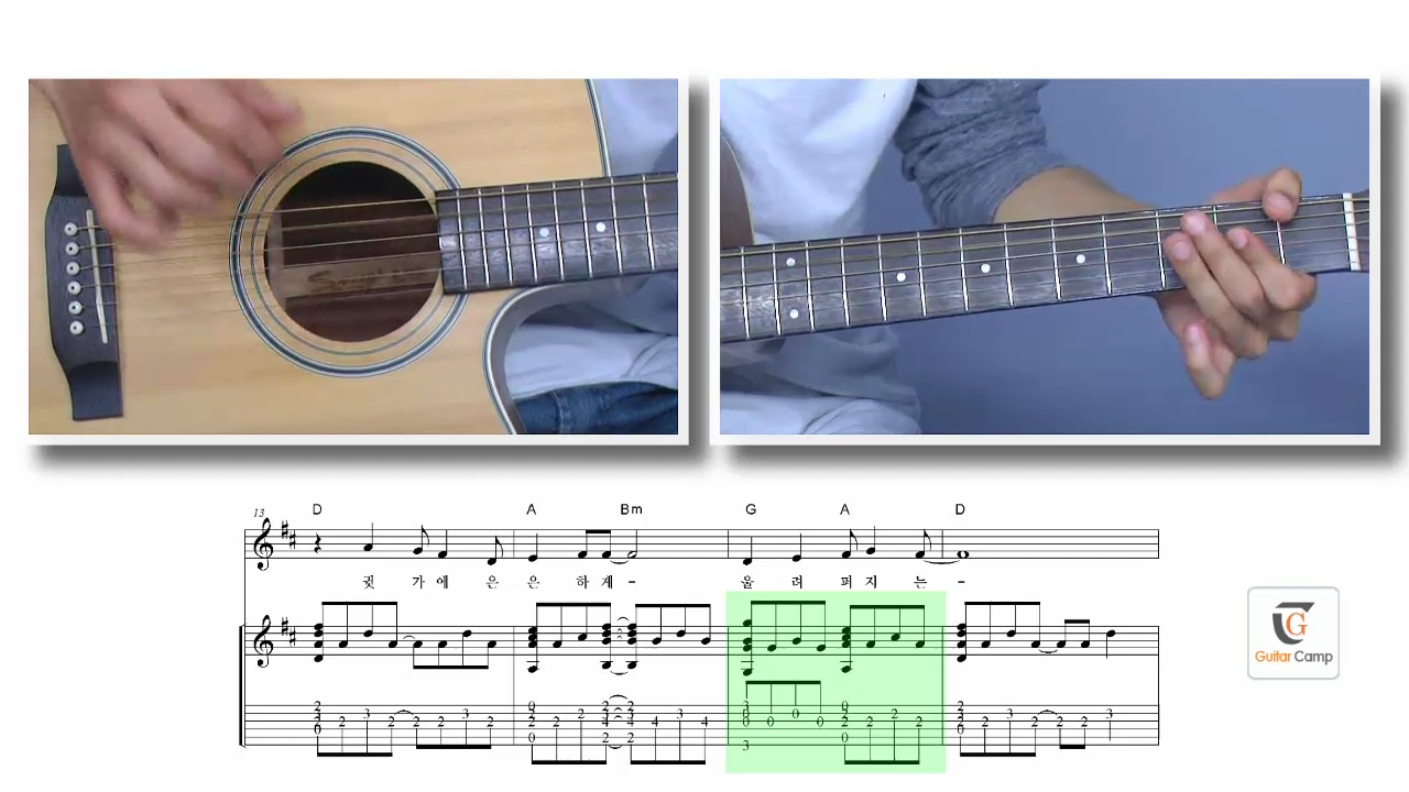 김광석 히트곡 10곡, 전체연주, 전주, 노래, 후렴, 후주부분으로 상세설명 동영상강좌컨텐츠 구성.