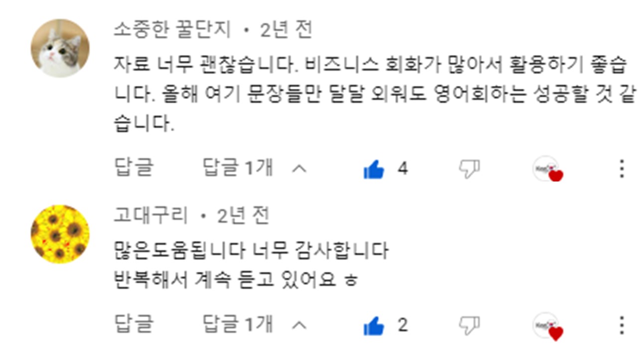 ★ 매우 유익한 회화 교육동영상 대단히 감사합니다.