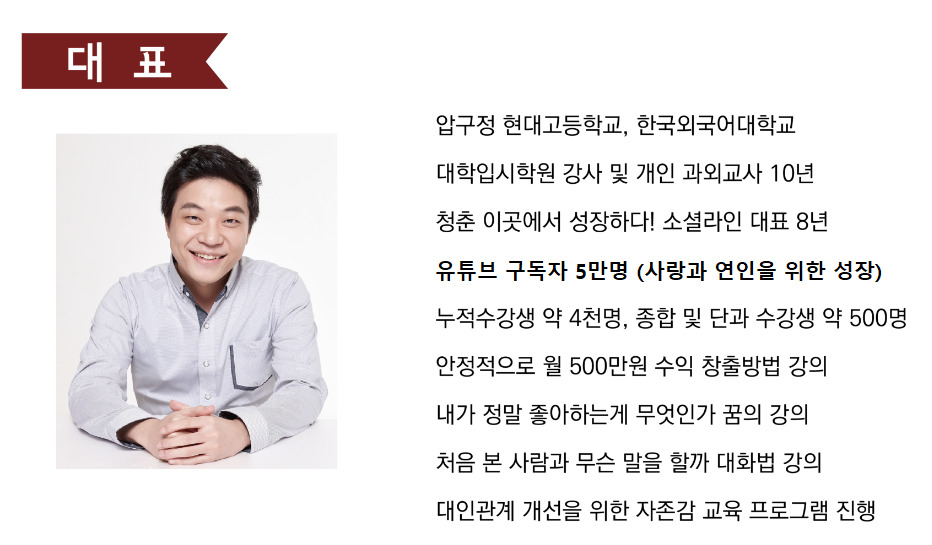 2012년부터 소셜라인이라는 학원을 만들어 지금까지 운영하고 있고