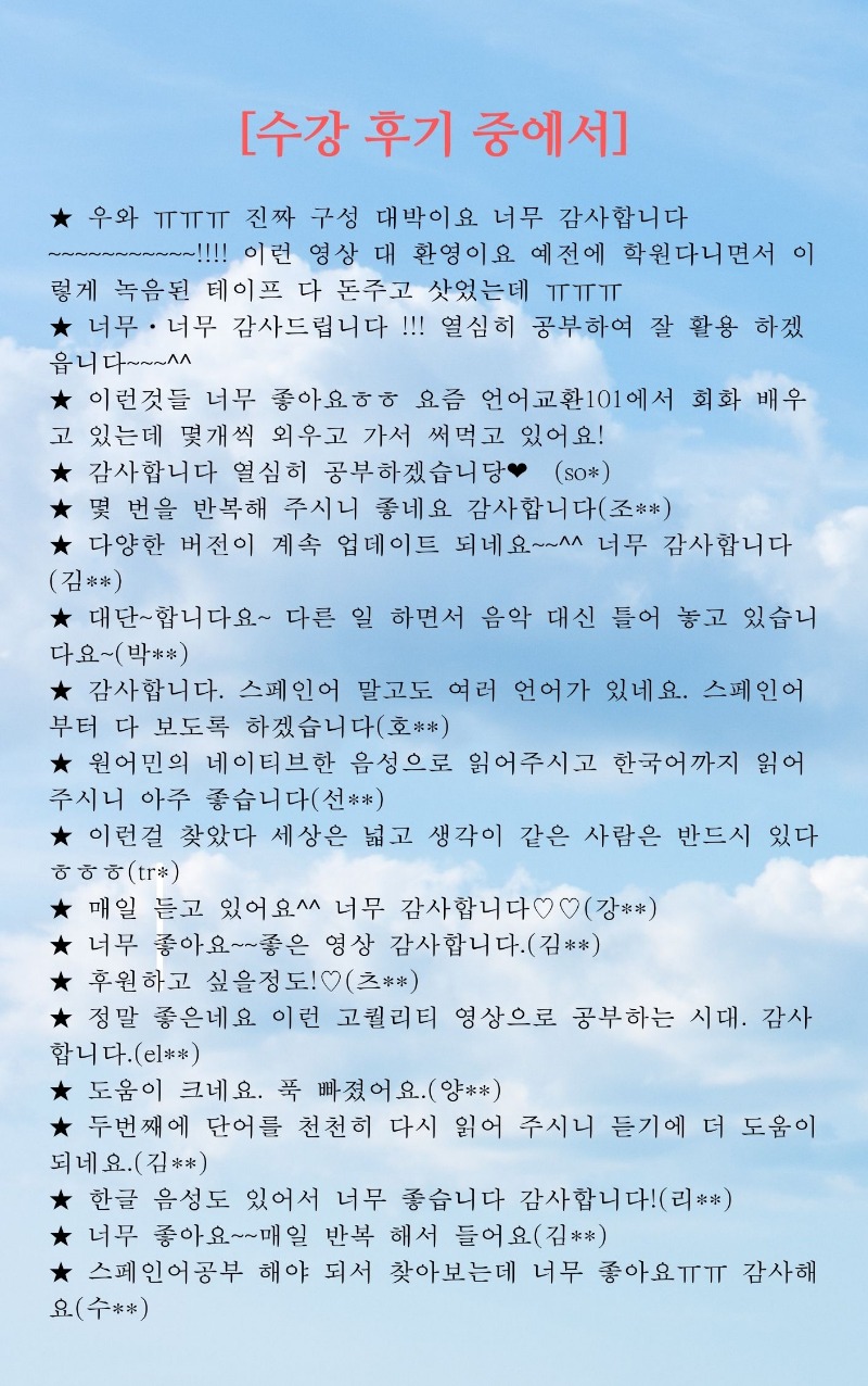 ★ 매일 듣고 있어요^^ 너무 감사합니다♡♡(강**)