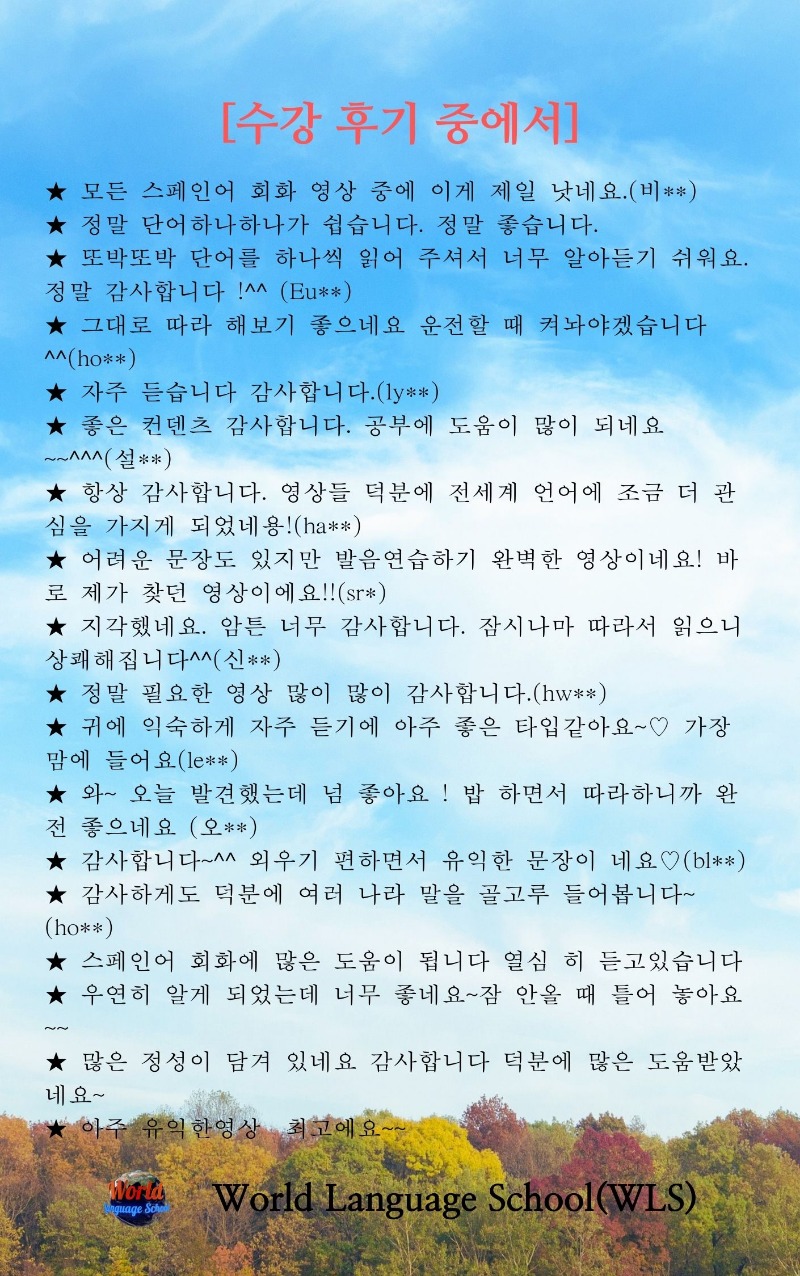 ★ 스페인어를 할 수 있는 새로운 기회를 주시니 감사드립니다.