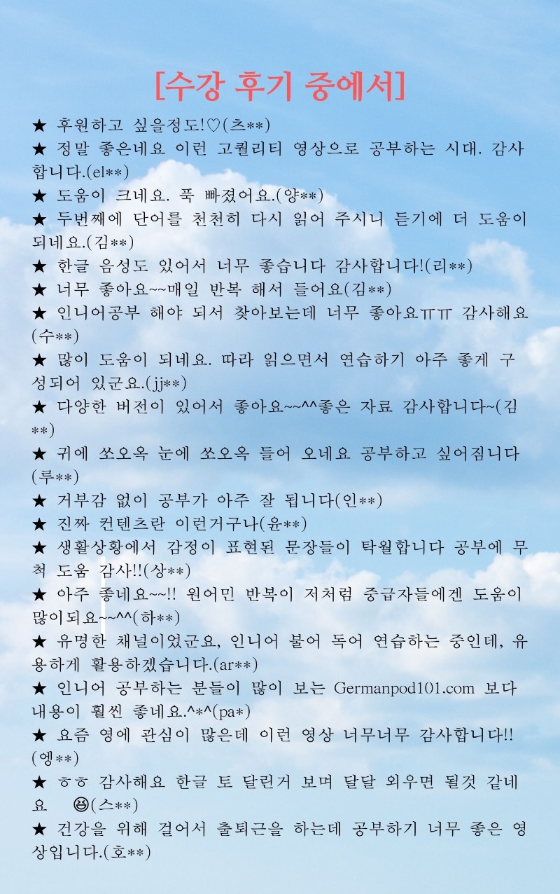 ★ 매일 듣고 있어요^^ 너무 감사합니다♡♡(강**)