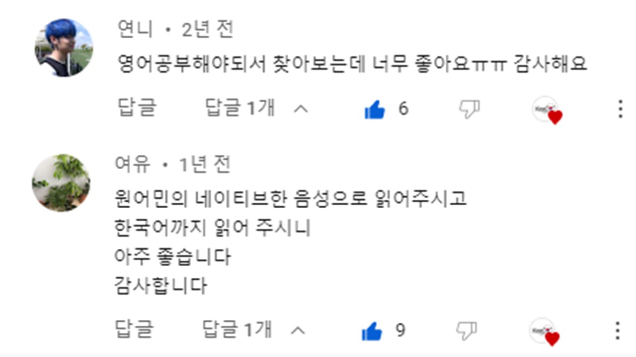 ★ 또박또박 단어를 하나씩 읽어 주셔서 너무 알아듣기 쉬워요.