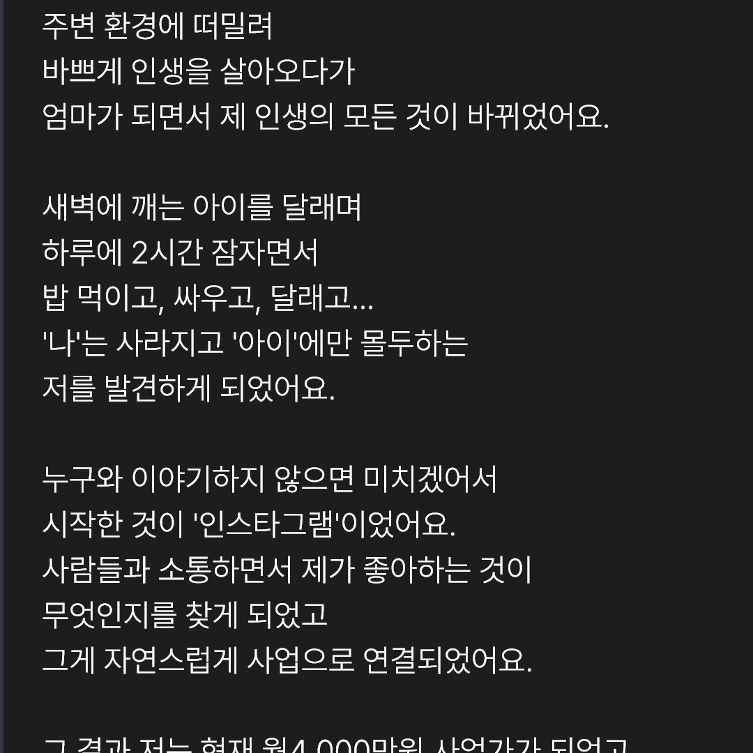 그 결과 저는 현재 월4,000만원 사업가가 되었고