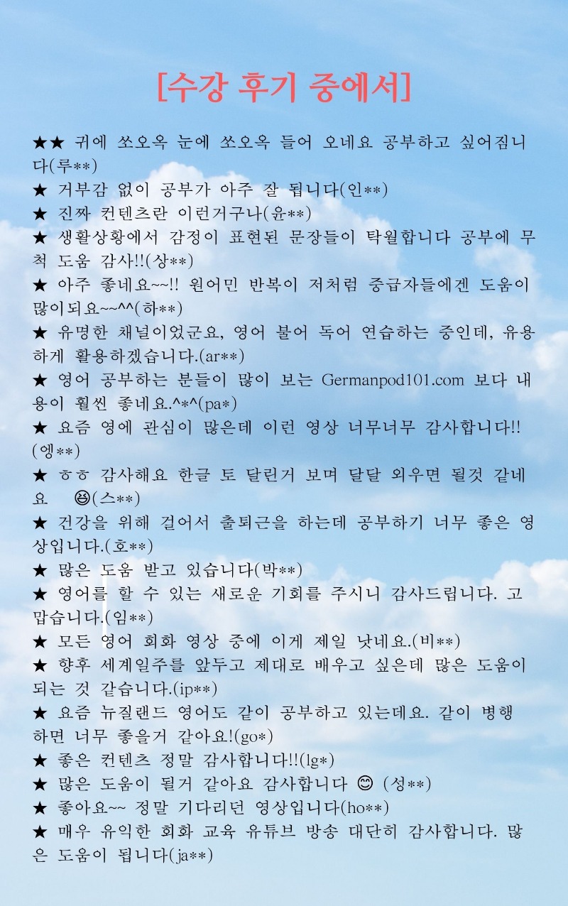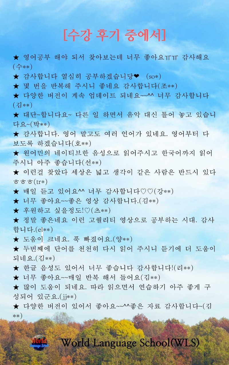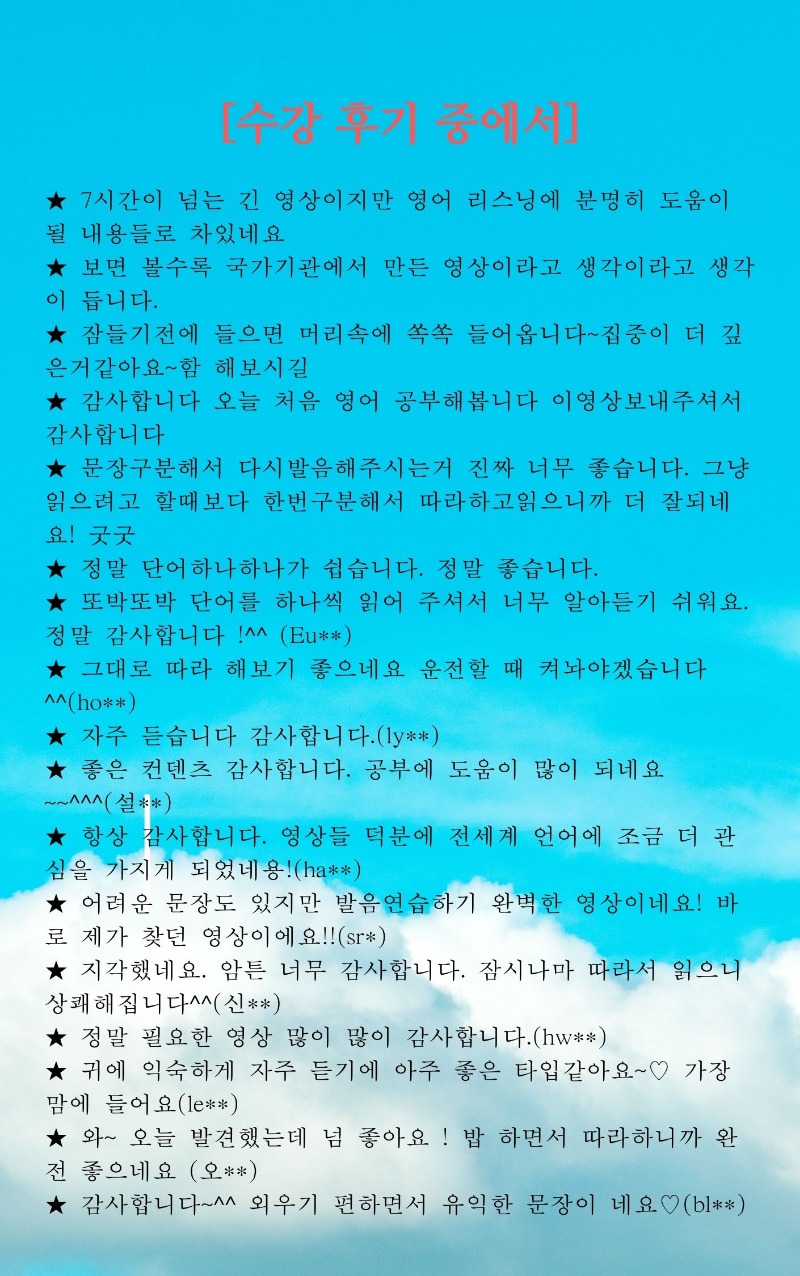 ★ 영어 회화에 많은 도움이 됩니다 열심 히 듣고있습니다