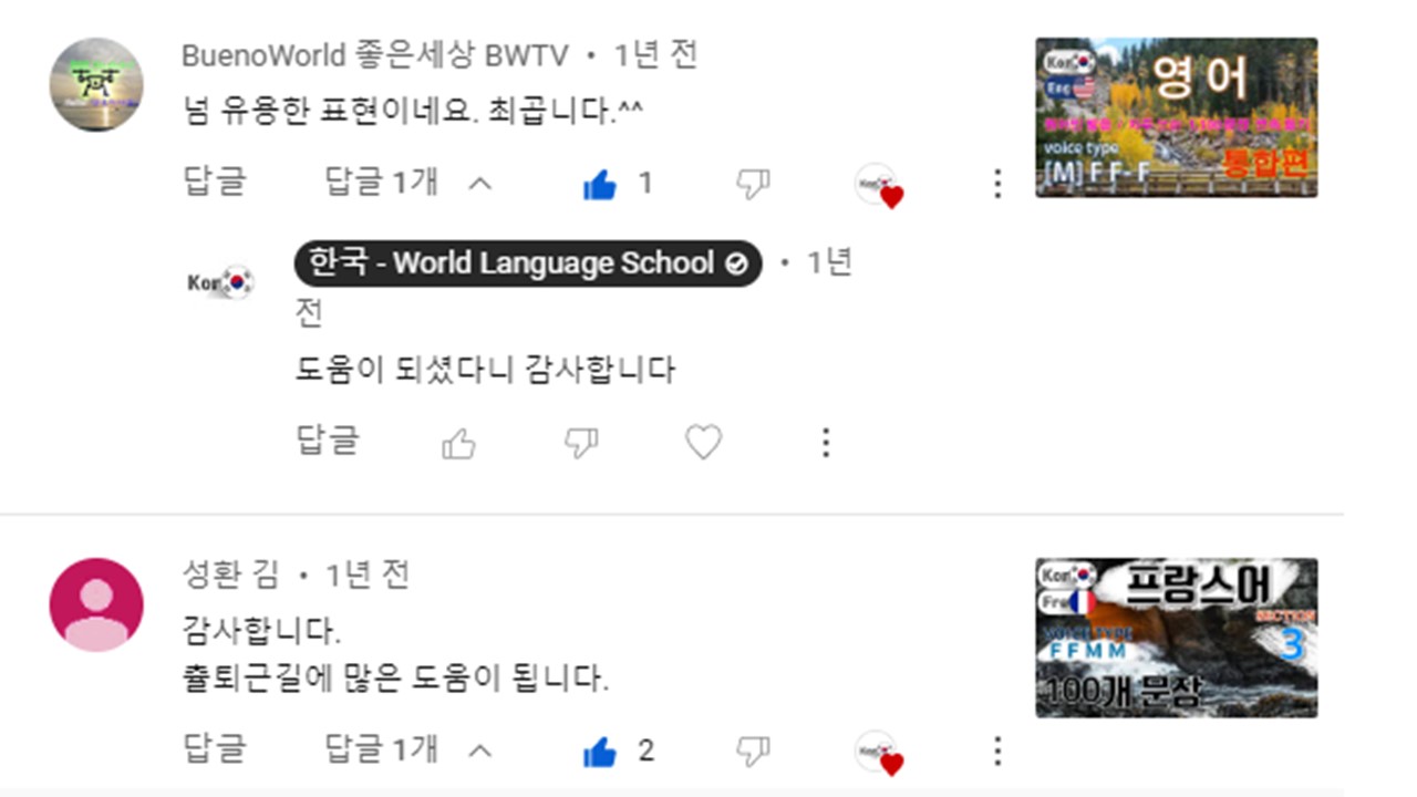 ★ 항상 감사합니다. 영상들 덕분에 전세계 언어에