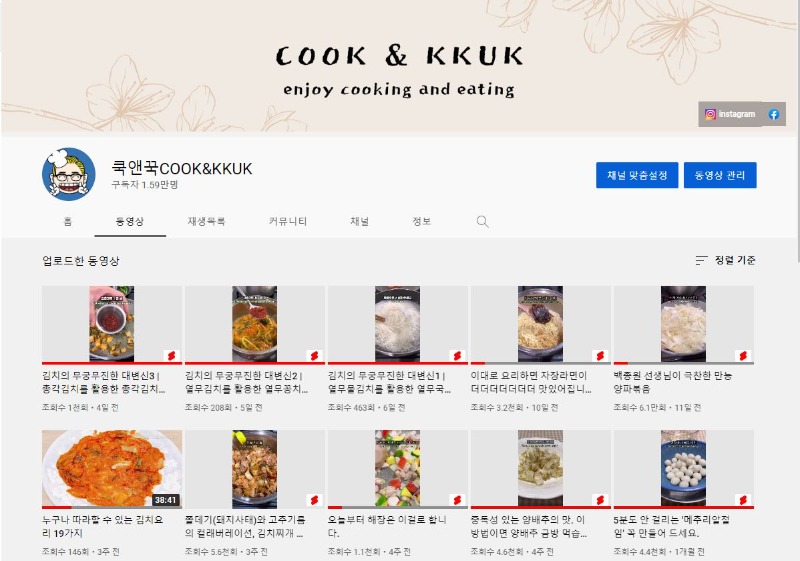 유튜브 쿡앤꾹 COOKKKUK 채널을 운영하고 있는