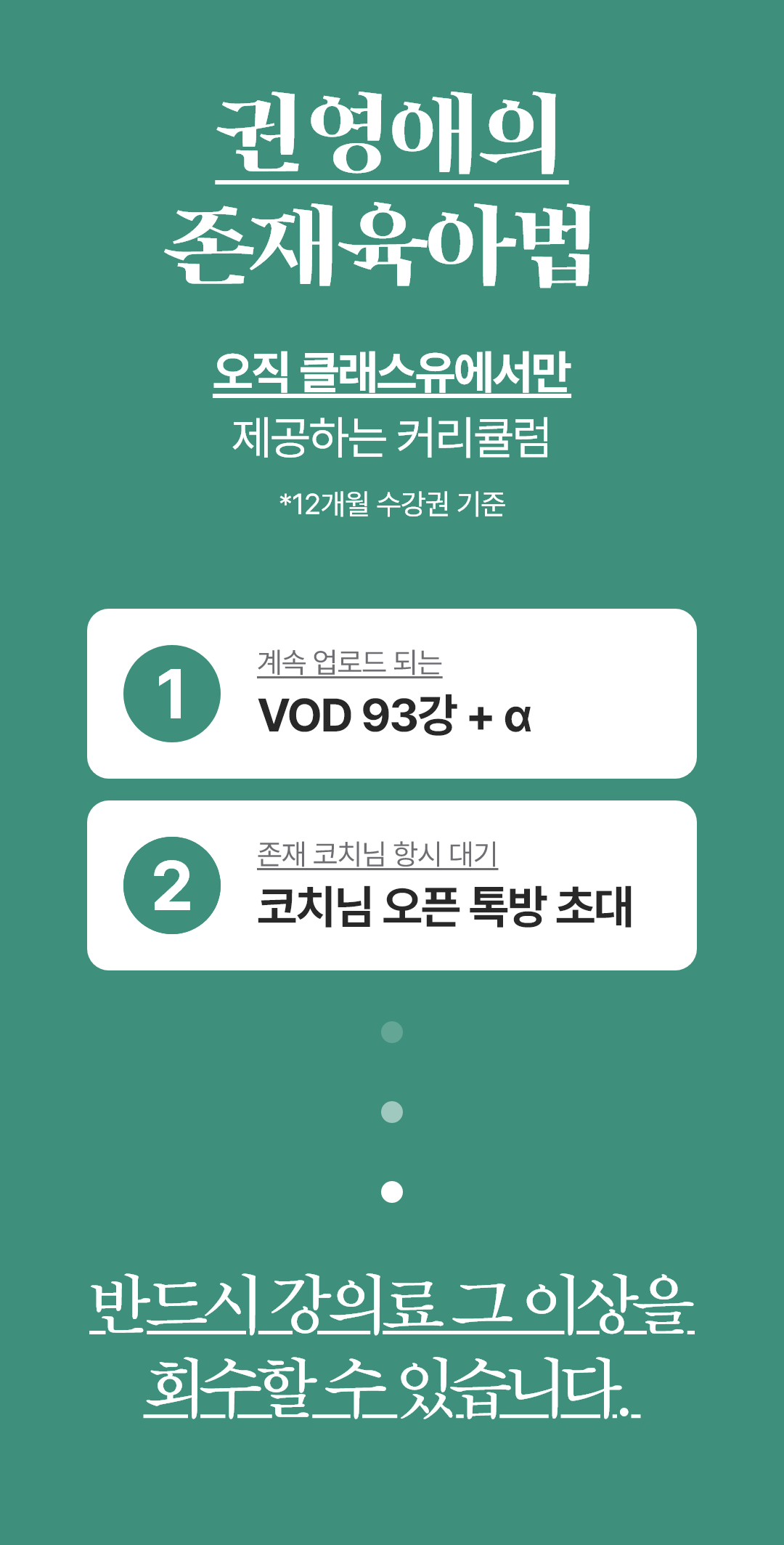 [존재육아법]강의는 클래스유 최초로 서비스되는 쌍방향 현장 부모 코칭 강의입니다. 부모 현장 코칭, 실습, 피드백 등이 담긴 입체적 강의 서비스로 100여명 현장 참여자 지원, 모집, 인터뷰, 선발, 약 30여 시간 촬영, 편집 등 심혈을 기울인 클래스유의 탁월한 서비스입니다. 부모 존재코치가 되어 1000명의 부모님께 전파해 주세요. [ 1:1코칭] [가족코칭] 은 070-7622-2772로 문의주세요. 함께 세상에 빛을 전해요. 나누어요. ^^