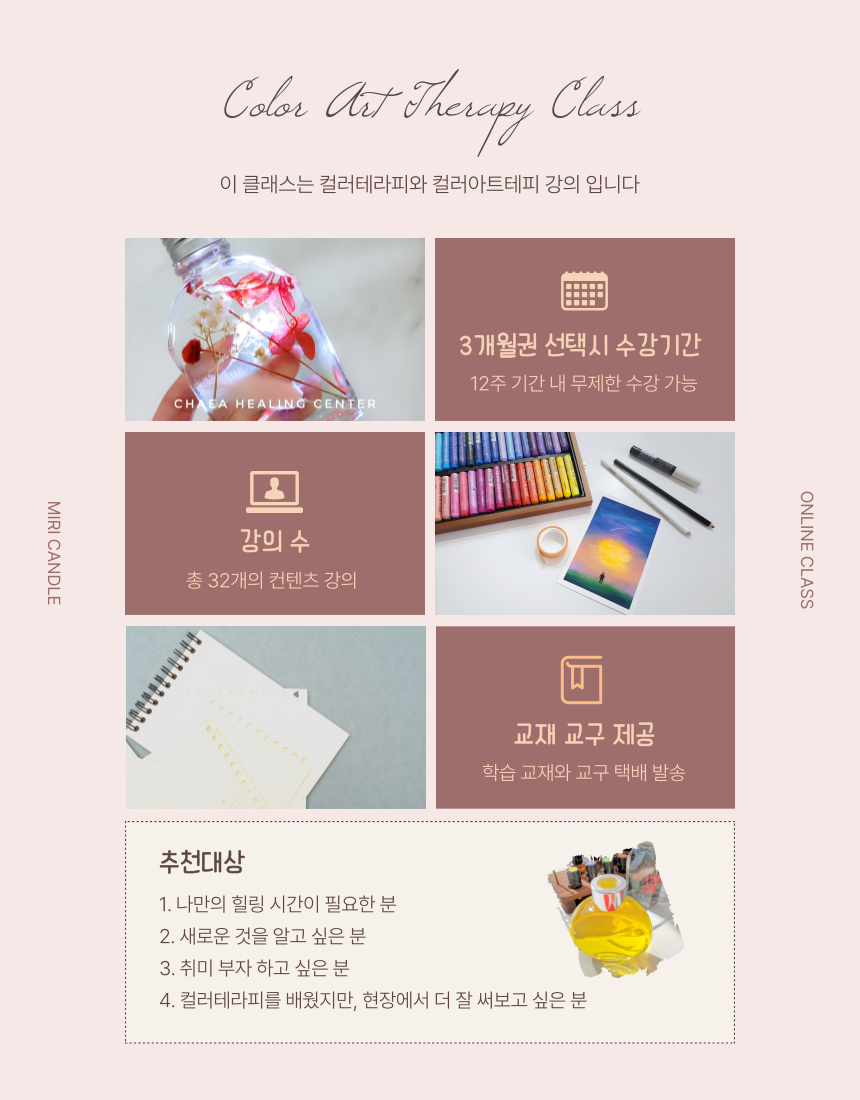 심리상담과 컬러테라피 수업을 진행하며 마음의 이야기를 들어왔습니다.