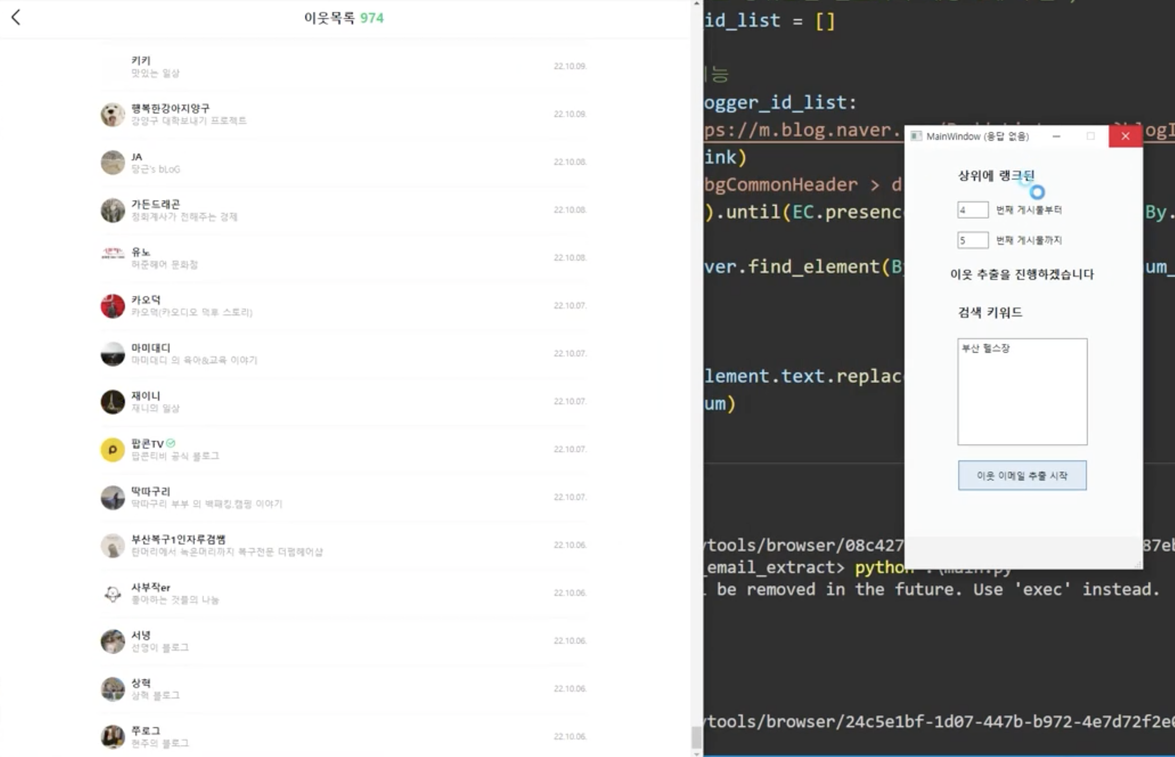 네이버 블로거들의 이메일을 추출하는 프로그램을 제작해볼 것입니다.