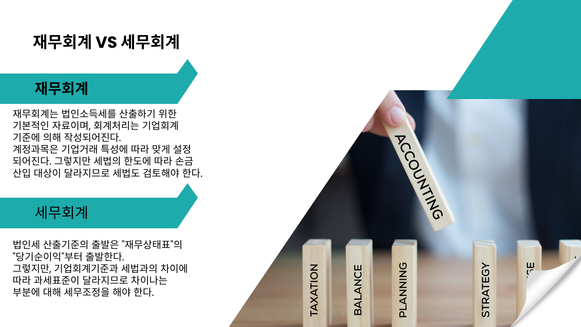 그래서 계정과목 선택은 중요하며, 회계기준과 세법적용기준이 다른부분이 있다면 조정을 통해 법인세를 산출해야 합니다.