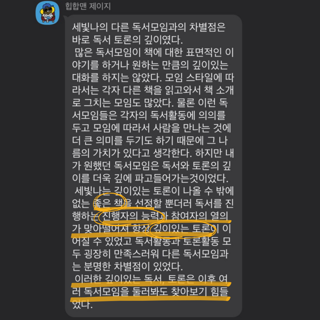 여러분도 각자의 모임을 운영하며 꼭 느껴보셨으면 좋겠습니다!