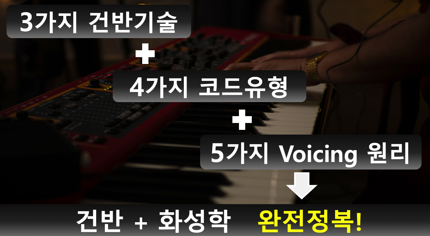 머릿속으로는 아는 코드도 막상 건반에 예쁜 소리로 적용하려고 하면 막막할 때가 있습니다. 즉, ‘어떻게 Voicing 할 것인가?’ 더 나아가 ‘어떻게 세련되게 Voicing 할 것인가?’ 의문이 들게 됩니다! 외우기만 해서 되는 게 아니라 원리를 알아야 합니다!! 5가지 Voicng 원리로 아주 쉽게 정리가 됩니다!