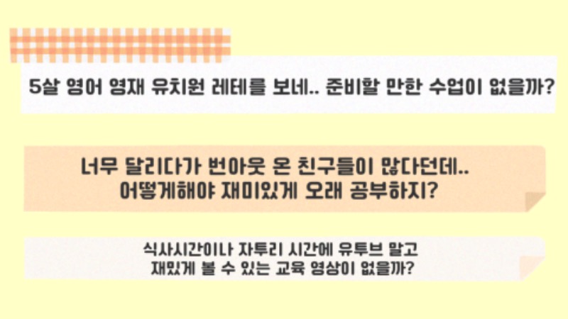 우리나라에서 누구에나 들 수 있는 물음, 나에게 이런 컨텐츠와 선생님이 있었다면 지금보다 더 잘하지 않았을까? 라는 물음에서 출발하여, 조기 영어 영재들을 발굴하고 이끌어주고자 합니다.