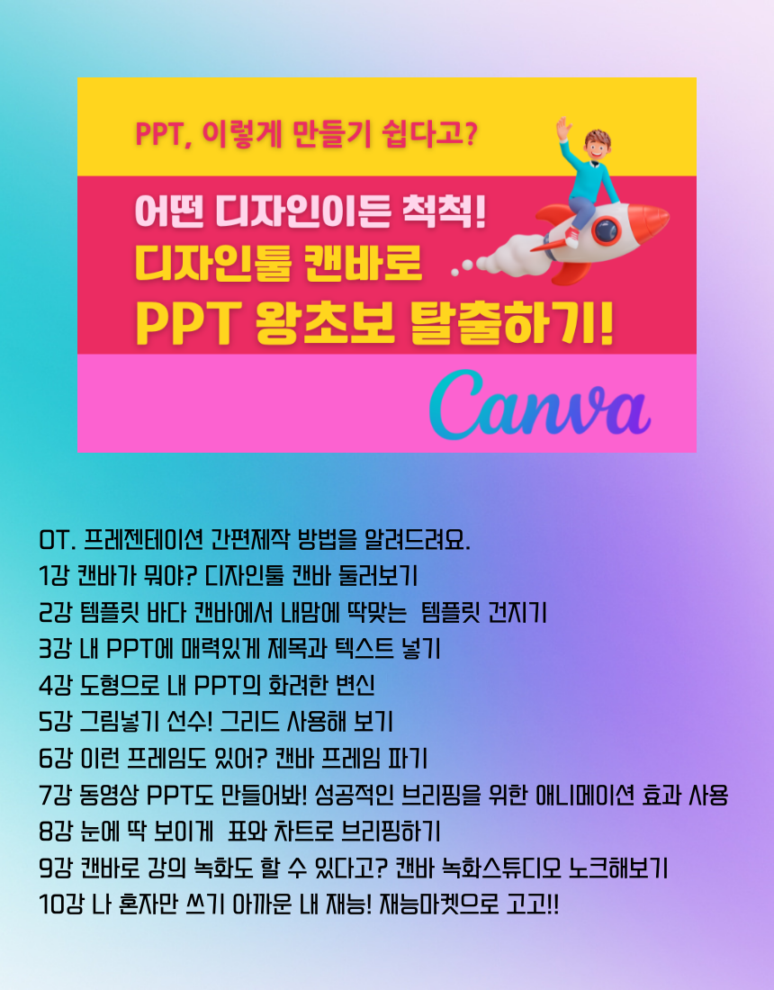 별도로 캔바 강사과정을 운영하고 있으니 관심있으신 분은 인스타그램 DM이나 오픈톡을 활용해서 문의주세요