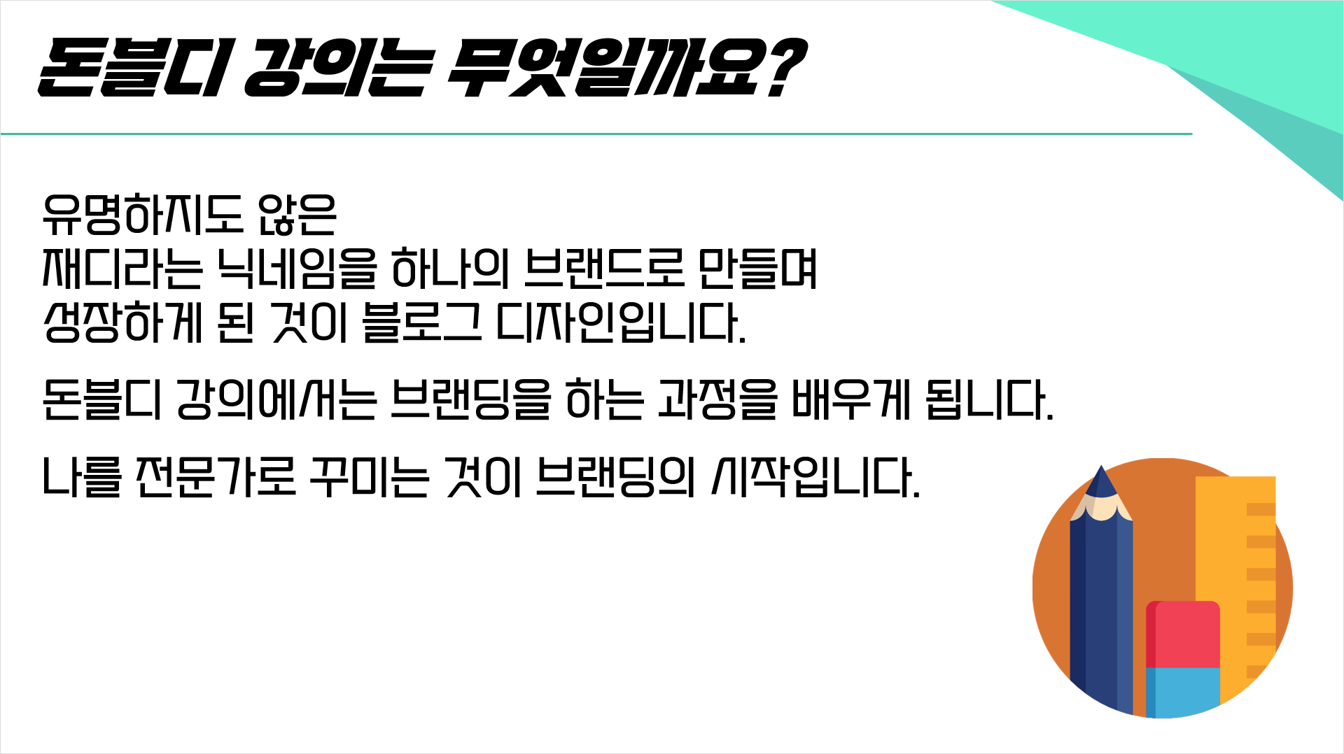 퍼스널 브랜딩 블로그 디자인 강의를 진행하는 강사입니다.