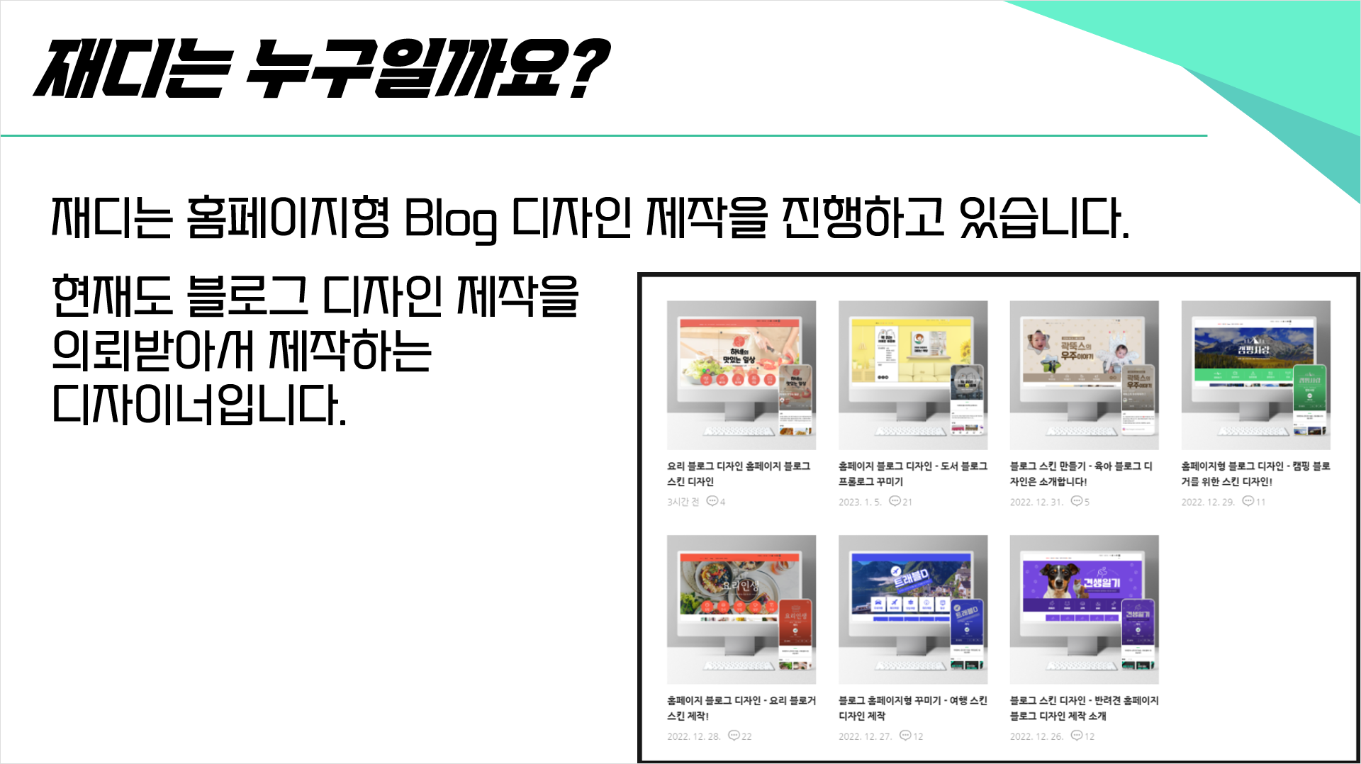 재디는 홈페이지형 Blog 디자인 제작을 진행하며,