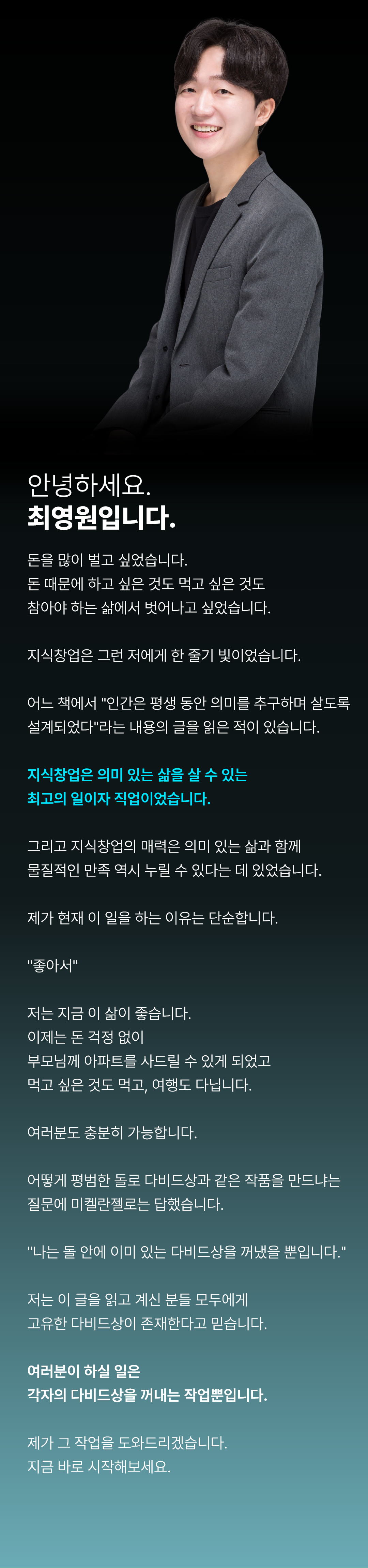 1강0-1. 아이템 찾기부터 수익화까지 바로 실천 가능한, 지식창업 단계법을 알려드릴 최영원이라고 합니다. FREE02:45 PLAY
