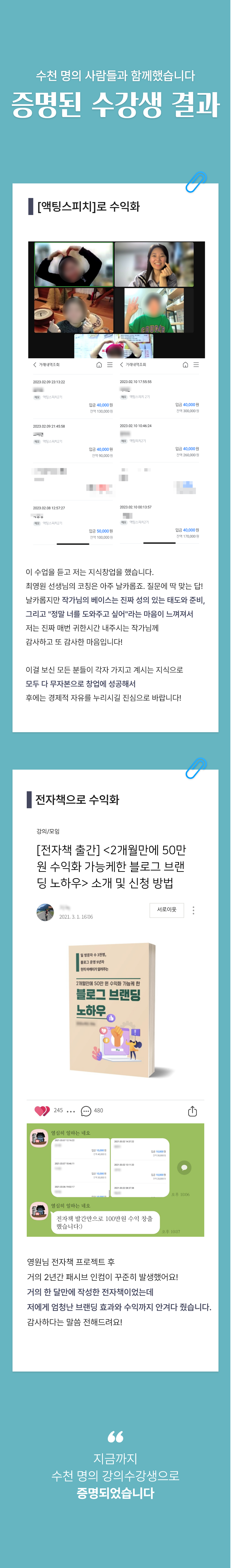 * 위 내용을 모두 성실히 수행하였음에도 수익화 실패 시 100% 환불