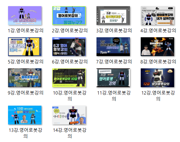 로봇 영어강의 기본과정은 모두 14강으로 이루어져 있습니다.