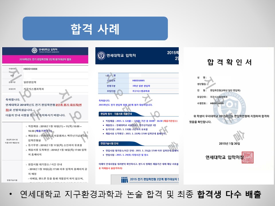 강사 본인이 연세대학교 지구시스템과학과 편입 논술 합격생이며